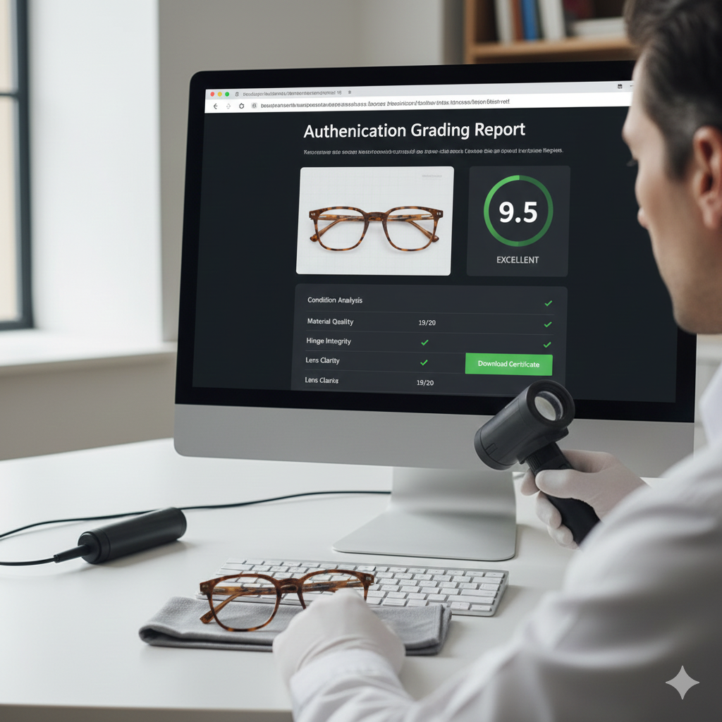 Our grading process goes beyond surface inspection — it evaluates the entire presentation of the eyewear, including all components, accessories, and packaging.