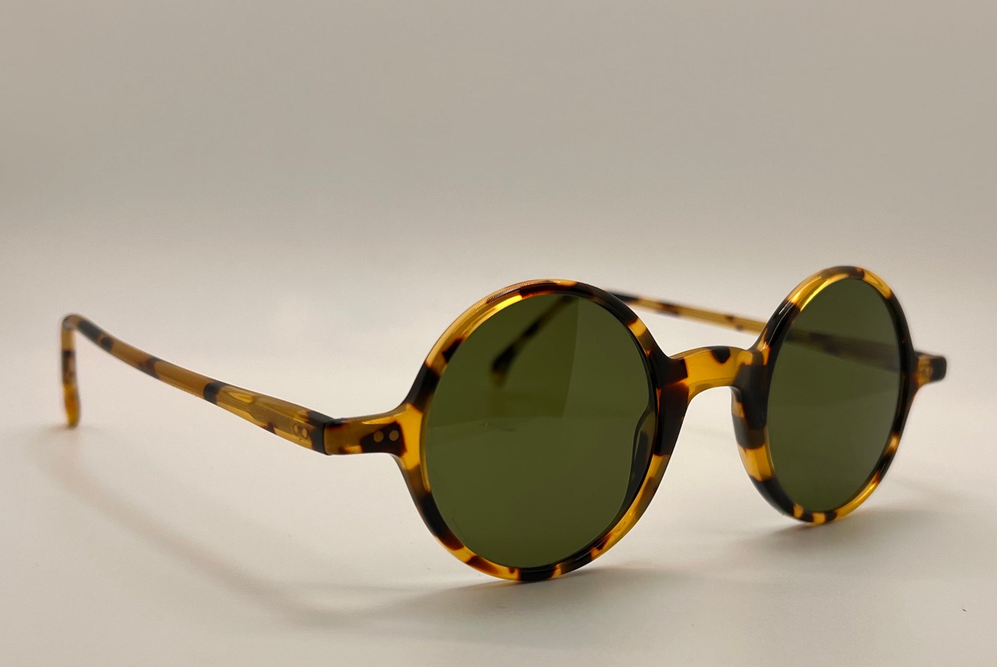 Brand New-Morel Aime 90040C-Round Tortoise Acetate Sunglasses With Custom Green Glass Lenses