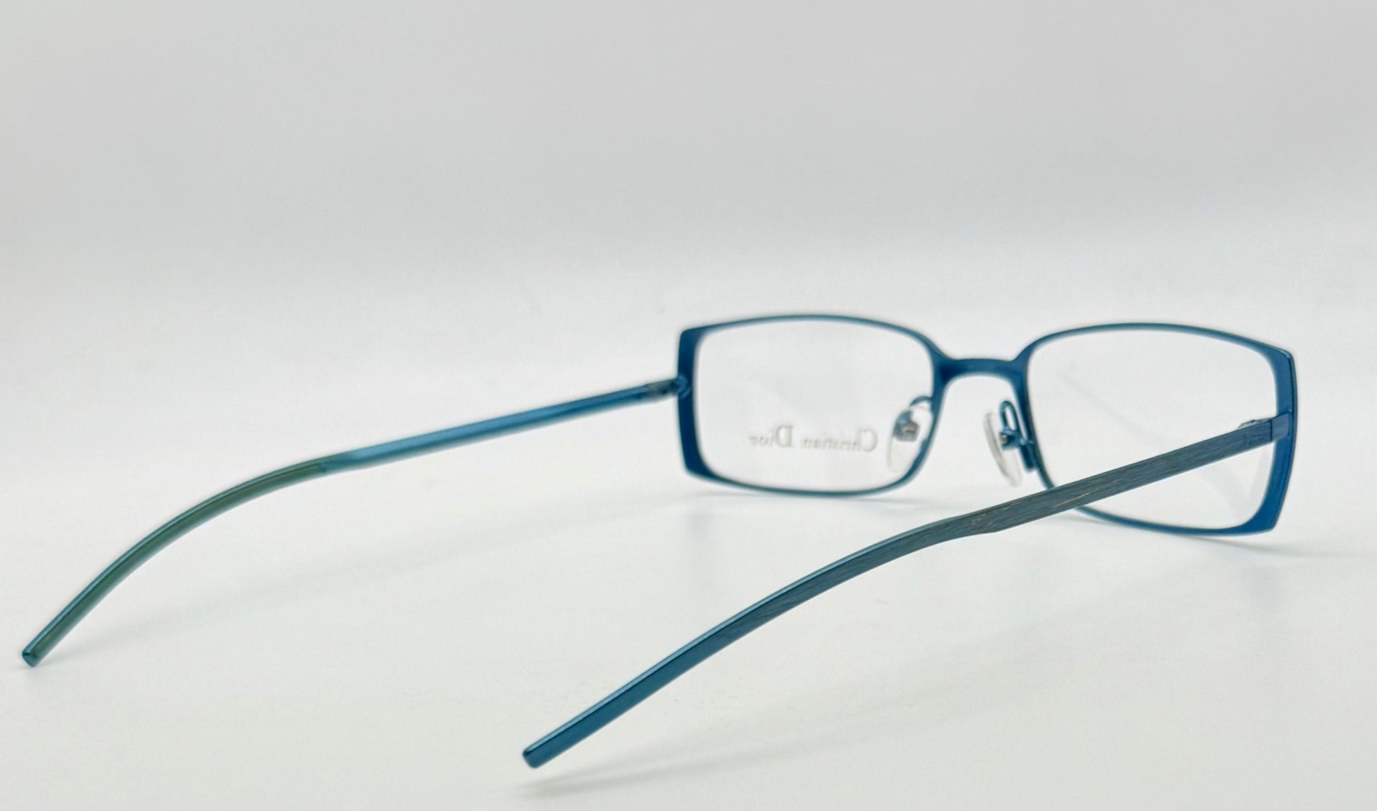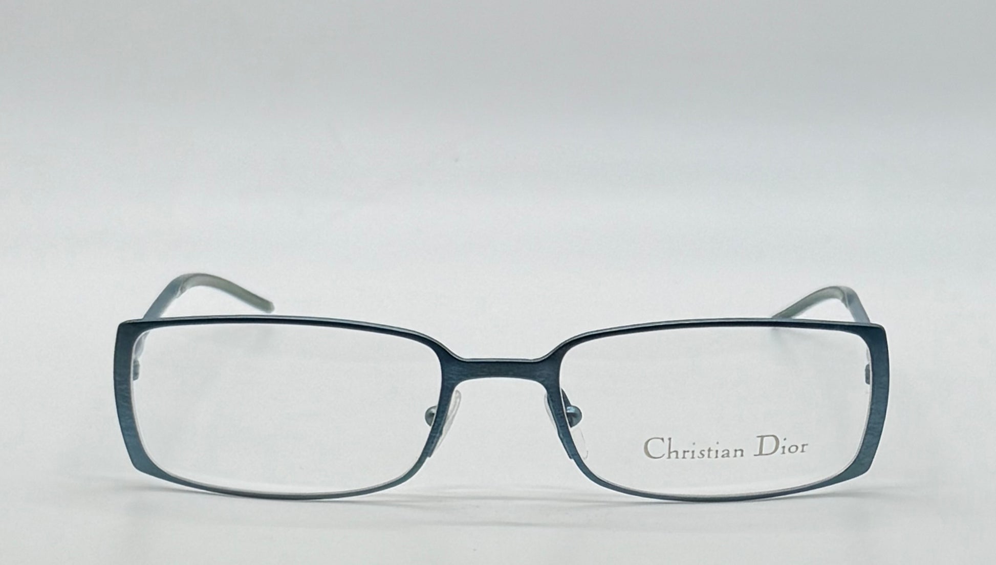 A genuine deadstock, unworn Christian Dior CD 3601 optical frame in a light sky-blue Austrian-made metal finish. This era of Dior eyewear is known for clean sculpted lines, lightweight metal construction, and exceptional durability.
