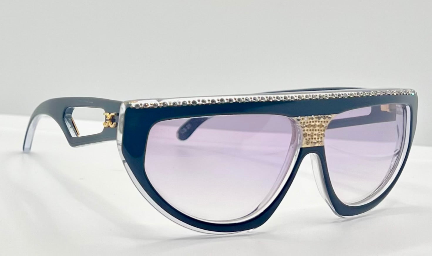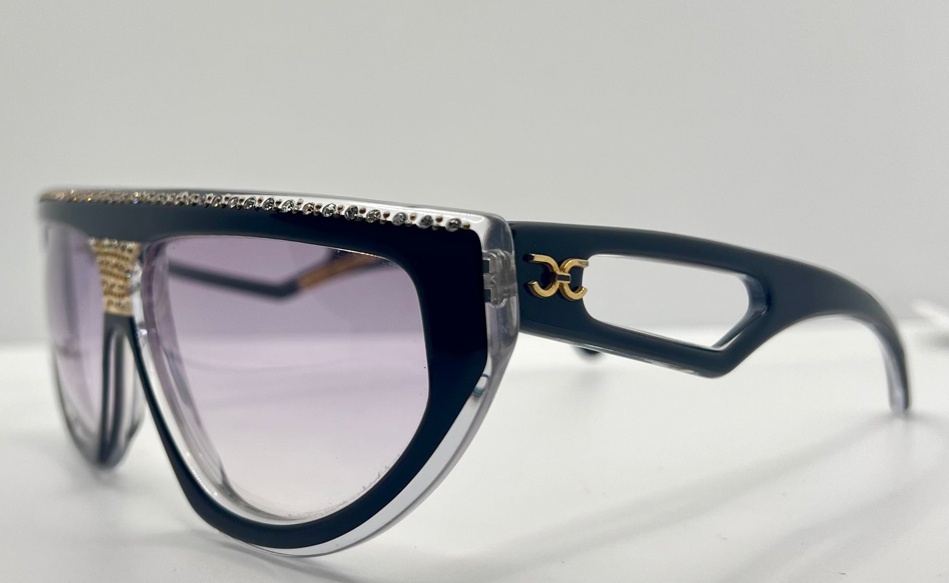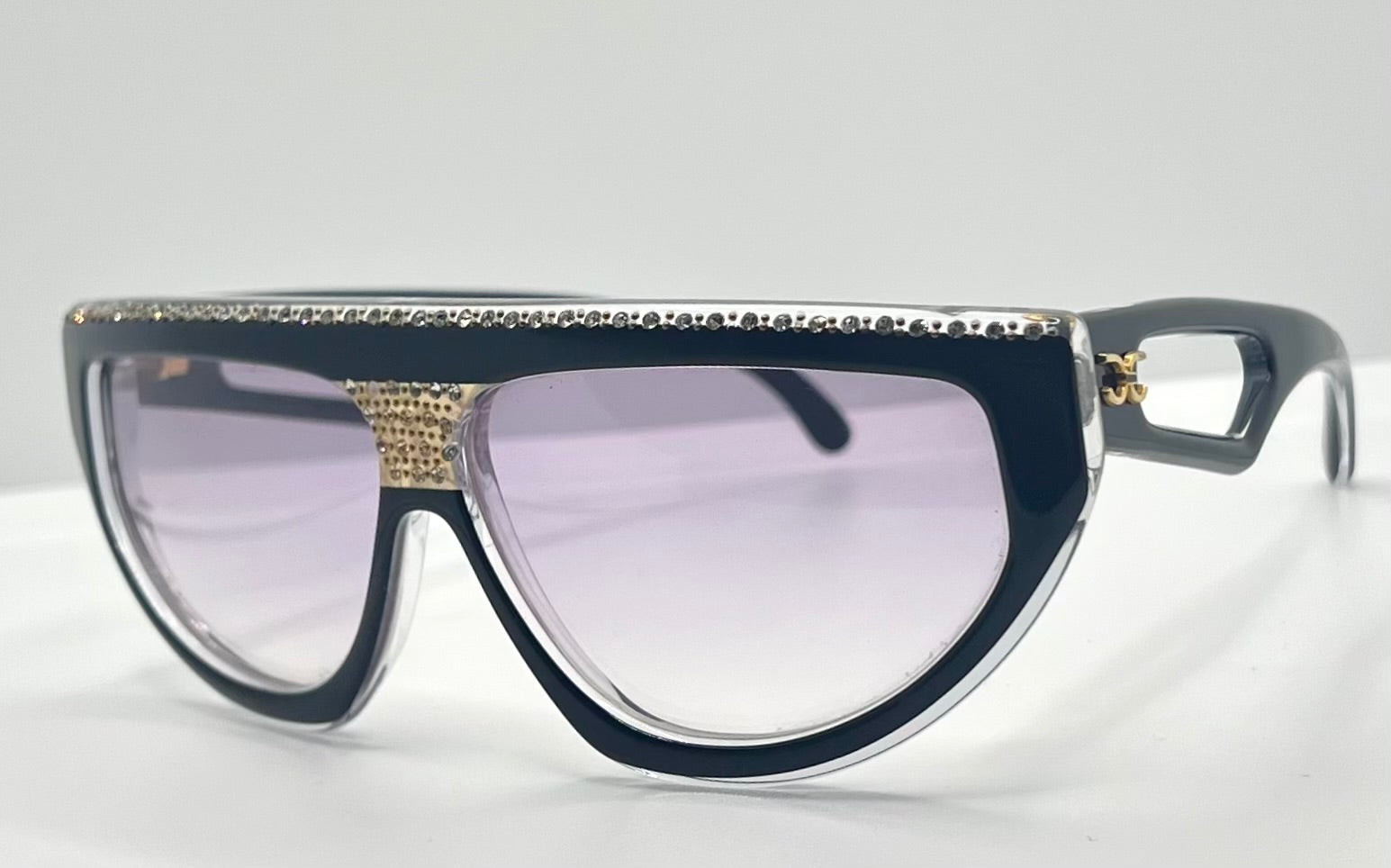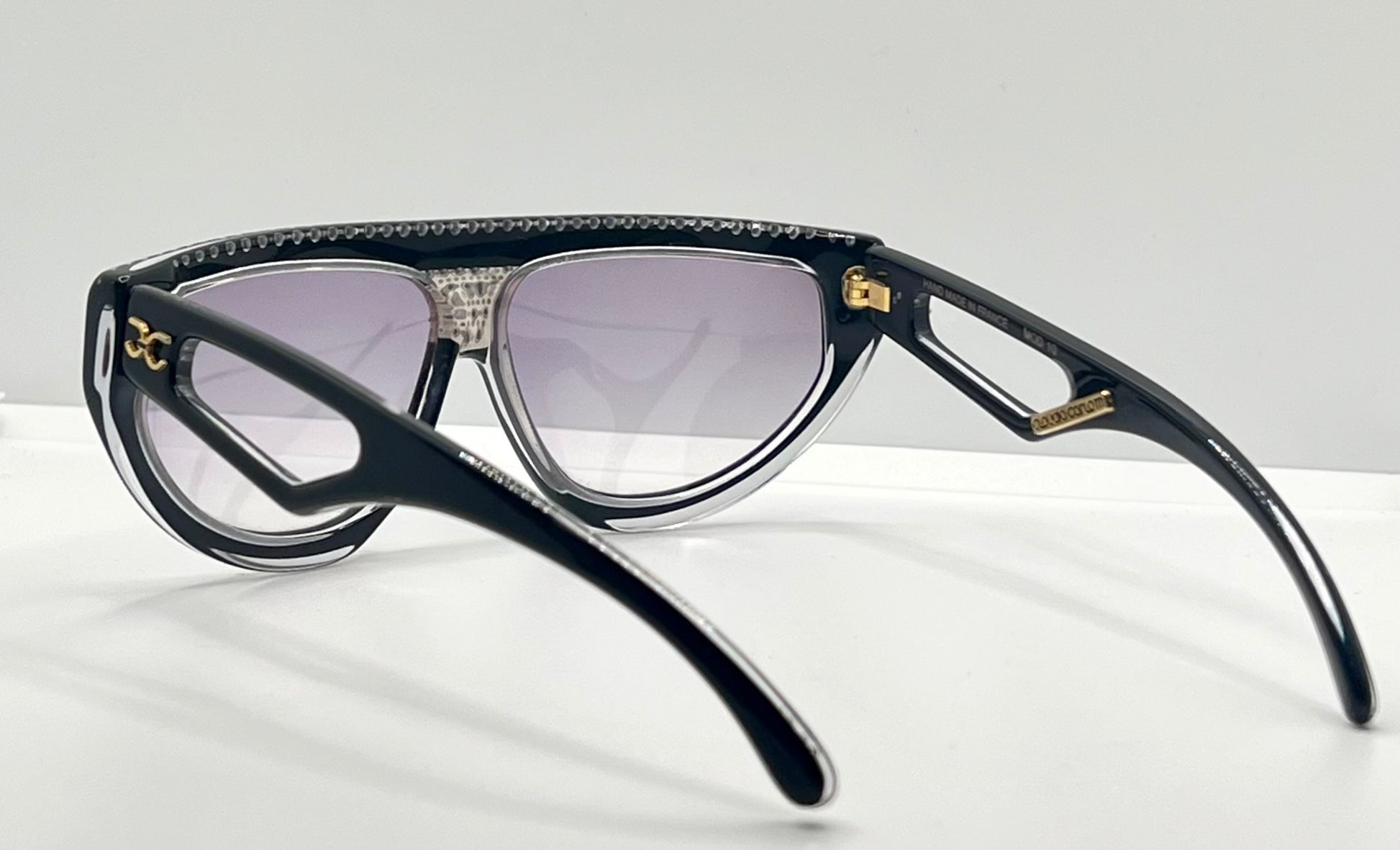 A defining piece from Claudia Carlotti’s mid-to-late 1980s collection, the “Icona” exudes glamor and bold individuality. The layered acetate, jeweled detailing, and architectural temple cuts pay homage to the golden age of haute couture eyewear — favored by icons of fashion and music alike.
