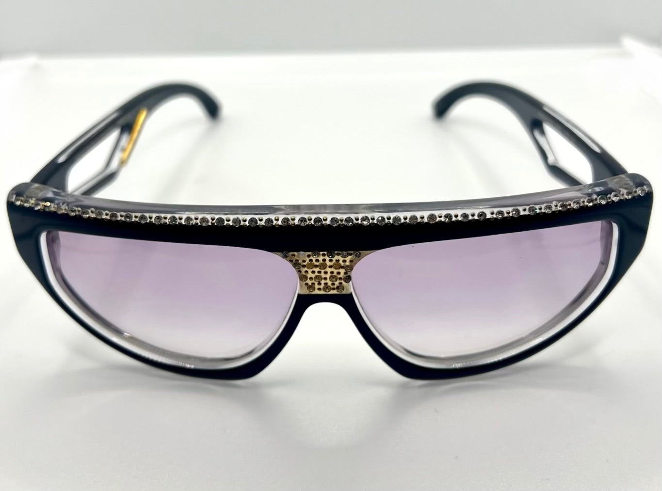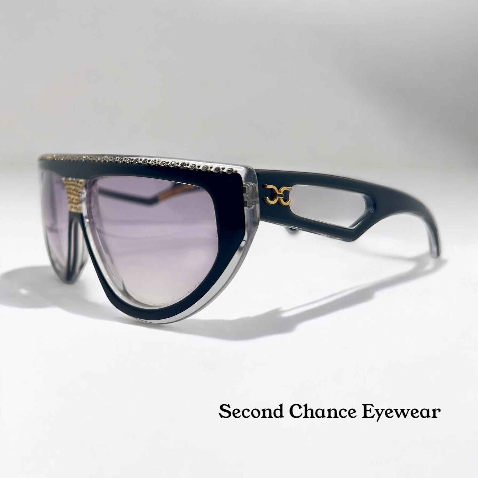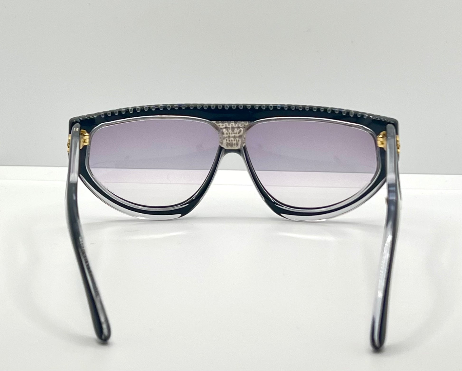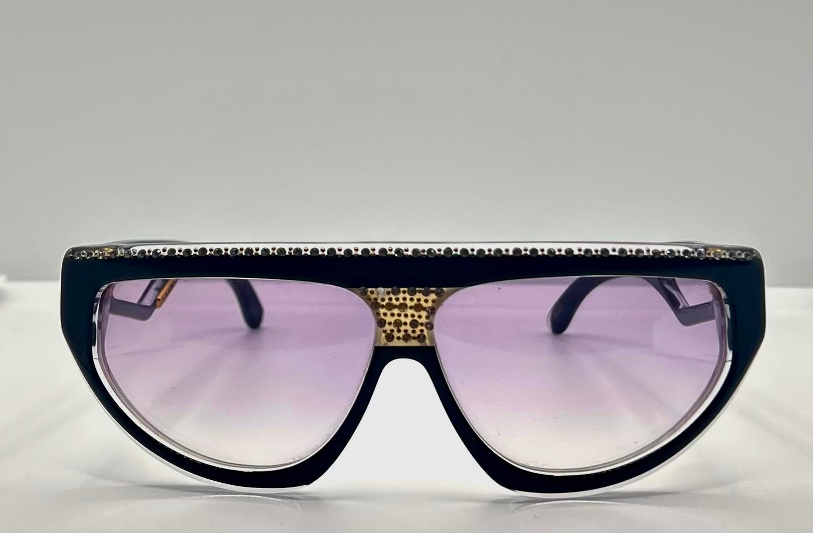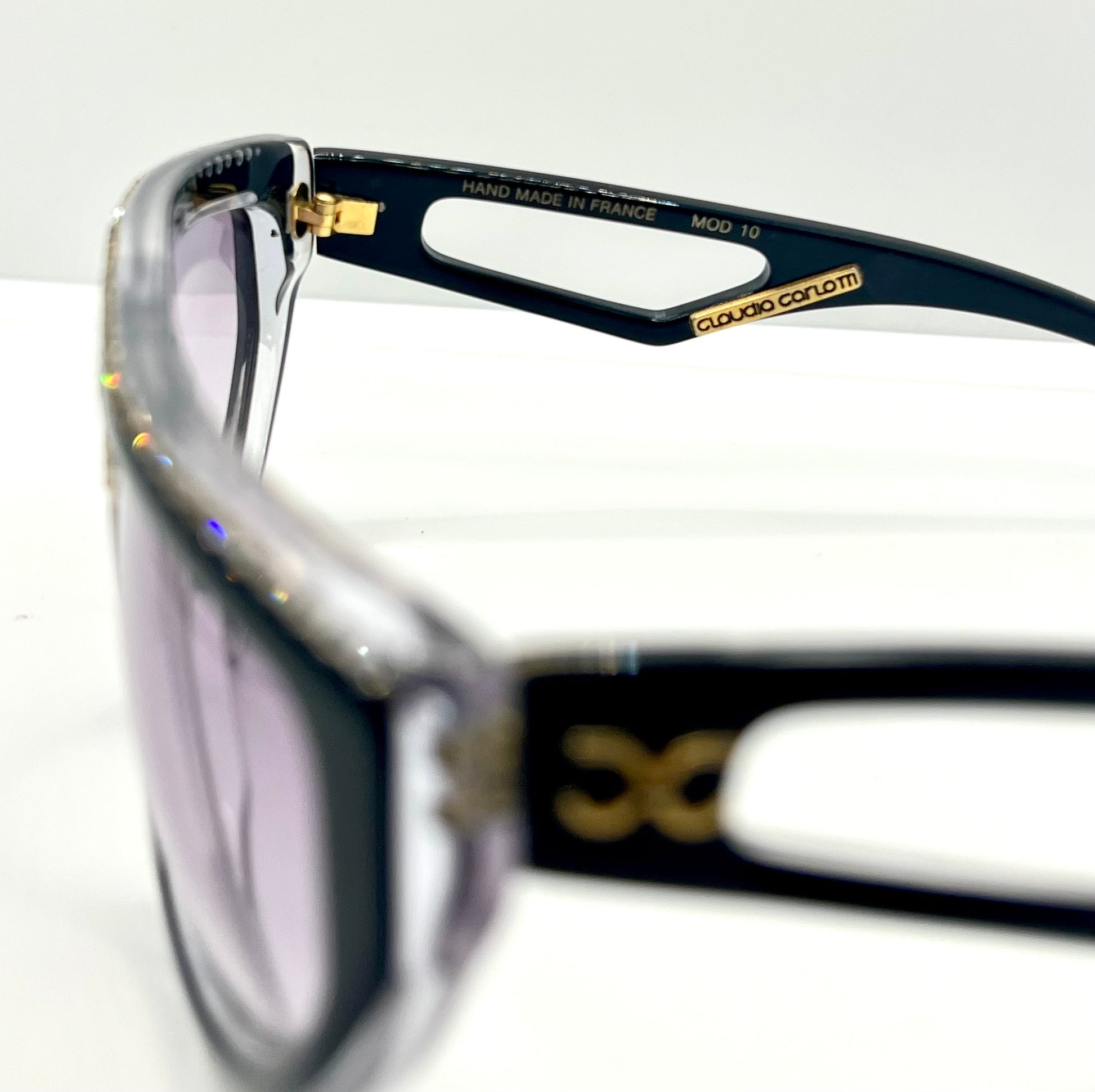 A defining piece from Claudia Carlotti’s mid-to-late 1980s collection, the “Icona” exudes glamor and bold individuality. The layered acetate, jeweled detailing, and architectural temple cuts pay homage to the golden age of haute couture eyewear — favored by icons of fashion and music alike.