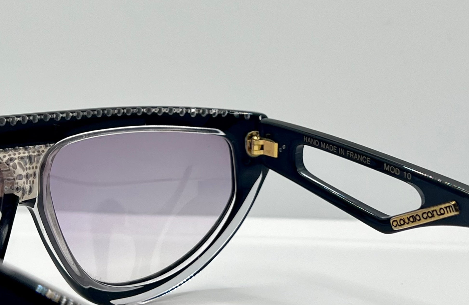 A rare couture masterpiece from the legendary Claudia Carlotti, this Stratos-BIS CS-21 Mod 10 model embodies 1980s French luxury eyewear at its peak. Handmade in France and preserved in immaculate Deadstock condition, this museum-grade piece showcases Carlotti’s signature fusion of avant-garde design and impeccable craftsmanship.
