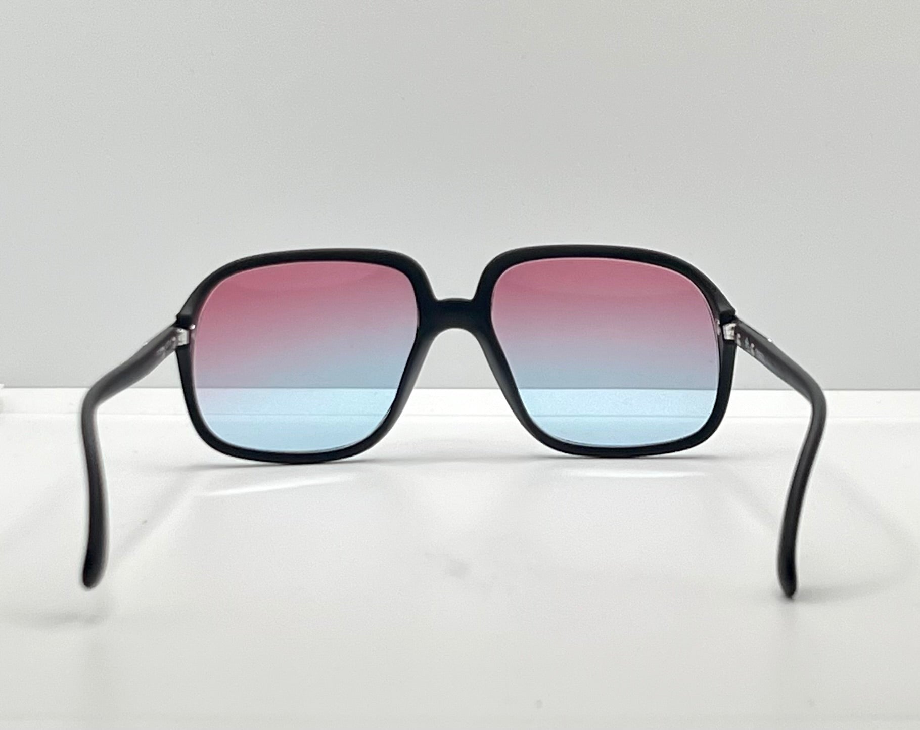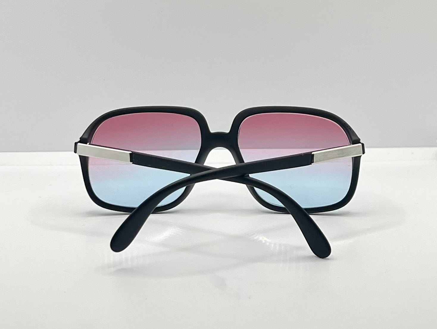 Dual-gradient lenses in Rose to Ice Blue, offering a vibrant retro-futurist vibe with full UV protection. The warm-to-cool fade not only softens glare but evokes the tonal palettes of early ’80s design — from ski slopes to synthwave visuals. These custom lenses make this Austrian classic a wearable statement piece.