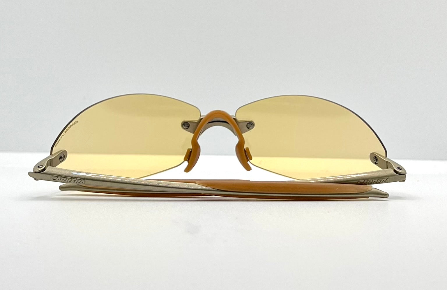 The Carrera WIZARD 27M was part of the early 2000s performance crossover collection, designed for athletes and trendsetters alike. The rare amber/yellow lens colorway enhances contrast and clarity, making it ideal for cycling, racing, and high-precision sports. Its aerodynamic, rimless design with lightweight construction reflects Carrera’s innovation during a defining era in Italian eyewear production.