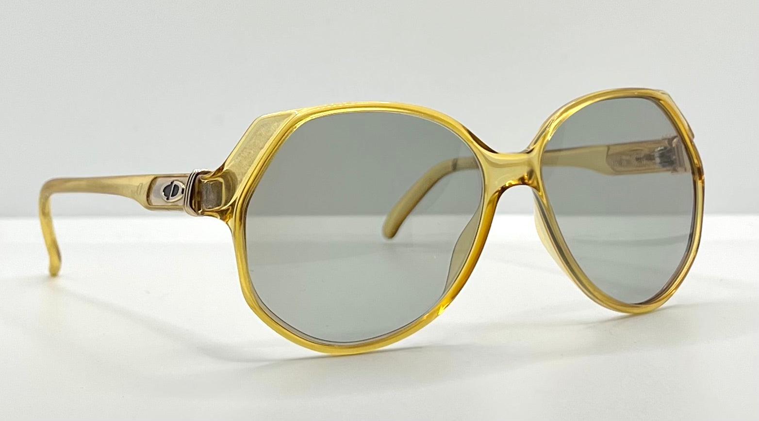 A bold and luxurious statement piece from the late 1970s to early 1980s, the Christian Dior 2255 20 represents the era when Dior eyewear combined sculptural form with technical innovation. Crafted from Optyl, an ultra-lightweight, heat-adjustable, and hypoallergenic material, this frame showcases a translucent honey amber tone that glows with depth and warmth.