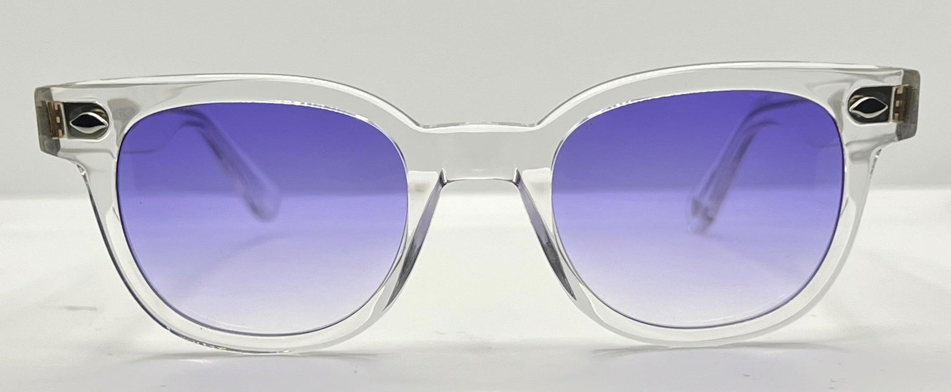 Sleek, lightweight, and perfectly proportioned, the Canter CR blends classic American design with contemporary minimalism. This brand-new pair has been fully customized with bold violet fade lenses by Second Chance Customs, transforming a clean silhouette into a standout collectible. The crystal acetate allows the colored lenses and hardware to shine-timeless with a twist.
