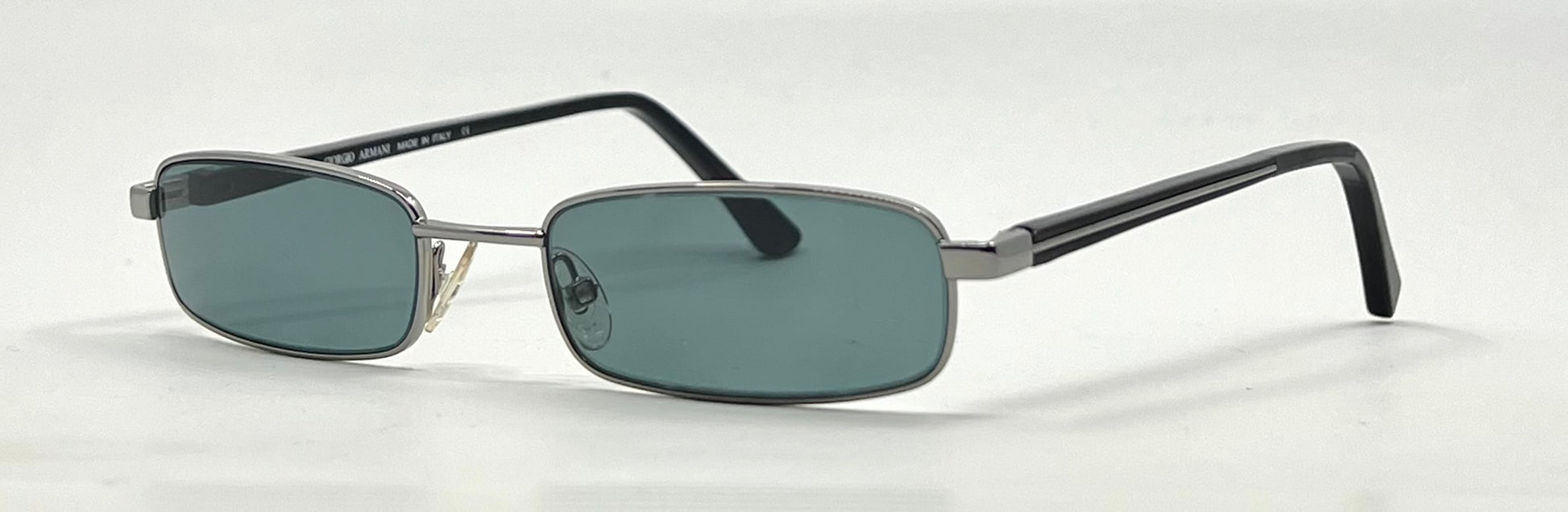 Unworn vintage Giorgio Armani GA272 T12 sunglasses, made in Italy and designed during the late 1990s/early Y2K era. This model features a sleek rectangular metal front paired with classic black acetate temples — a clean, minimalist silhouette that reflects Armani’s refined design language of the period.