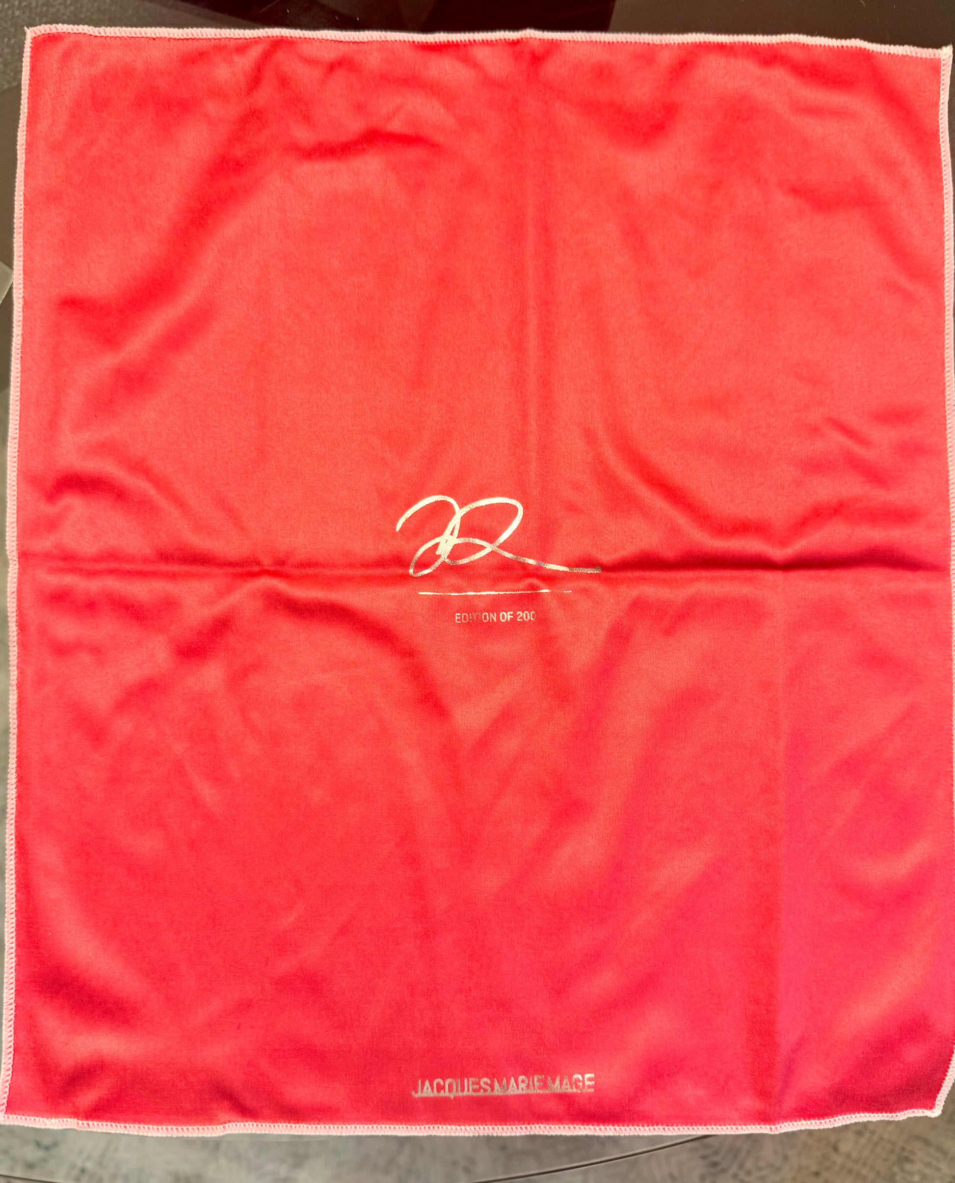 This rare Jacques Marie Mage artist-print cleaning cloth is part of a strictly limited internal studio release, produced in an edition of only 200 pieces and delivered in the original deep-red JMM presentation folio. This format is reserved for select internal and VIP releases and is not distributed through standard retail channels.