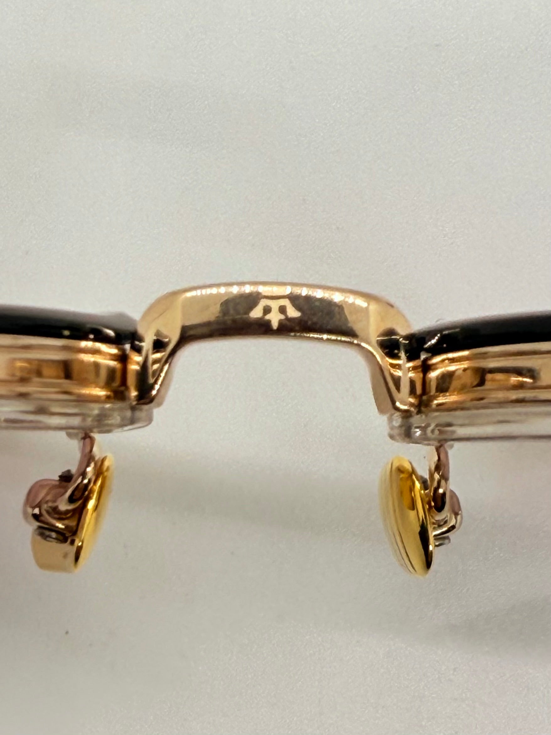 No visible signs of wear from use. Frame, hardware, and engraving are crisp. Custom lenses pristine. Hinges tight and smooth. Certificate and factory packaging present. Carefully stored and authenticated by Second Chance Eyewear.