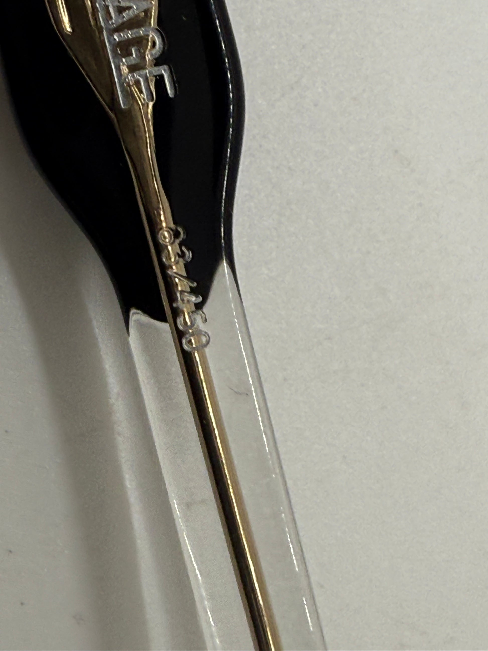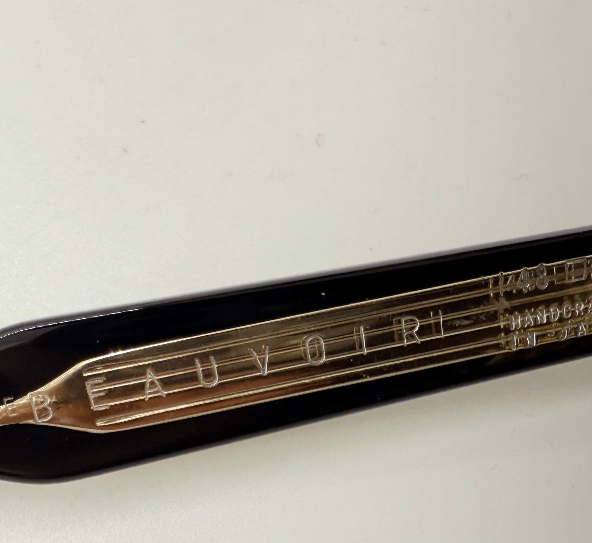 This pair features exacting finishing throughout, rare low serial, and remains one of the most admired hybrid acetate-metal forms JMM has produced.