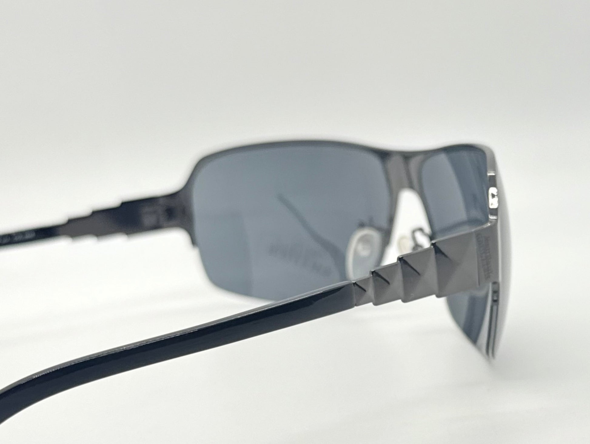A striking early-2000s Jean Paul Gaultier design defined by the brand’s industrial-luxury aesthetic. The SJP 064 showcases Gaultier’s unmistakable pyramid-templed architecture—an homage to the designer’s fascination with structure, geometry, and futurism. Made in Italy under Safilo production, this piece bridges the boundary between the avant-garde 1990s era and the refined sophistication of Gaultier’s later collections.
