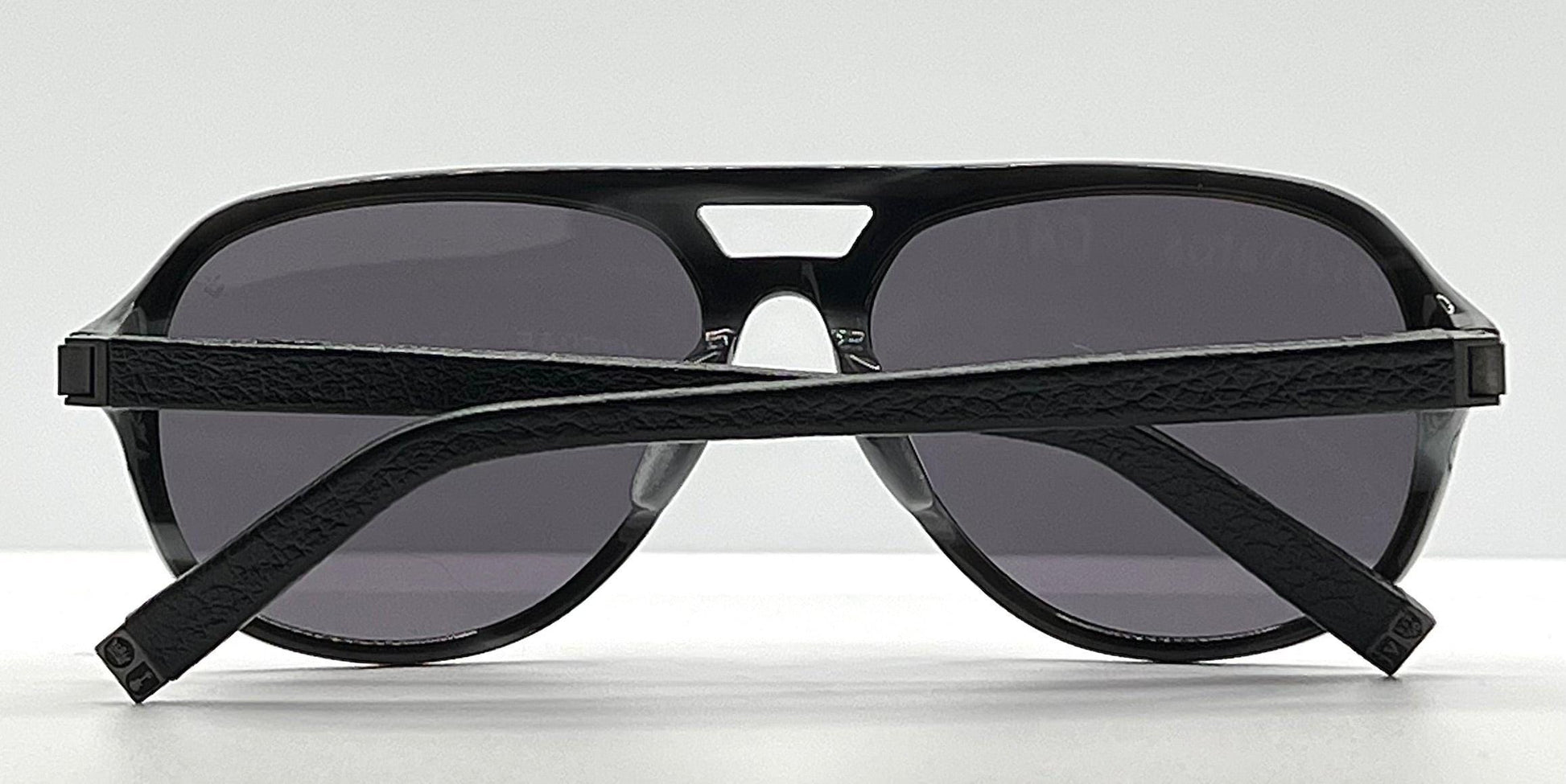 Equipped with Category 3 dark grey lenses, these frames provide optimal protection in strong sunlight while maintaining classic style and optical clarity. Premium finishing touches, such as the leather-wrapped temples, highlight the designer’s attention to detail.