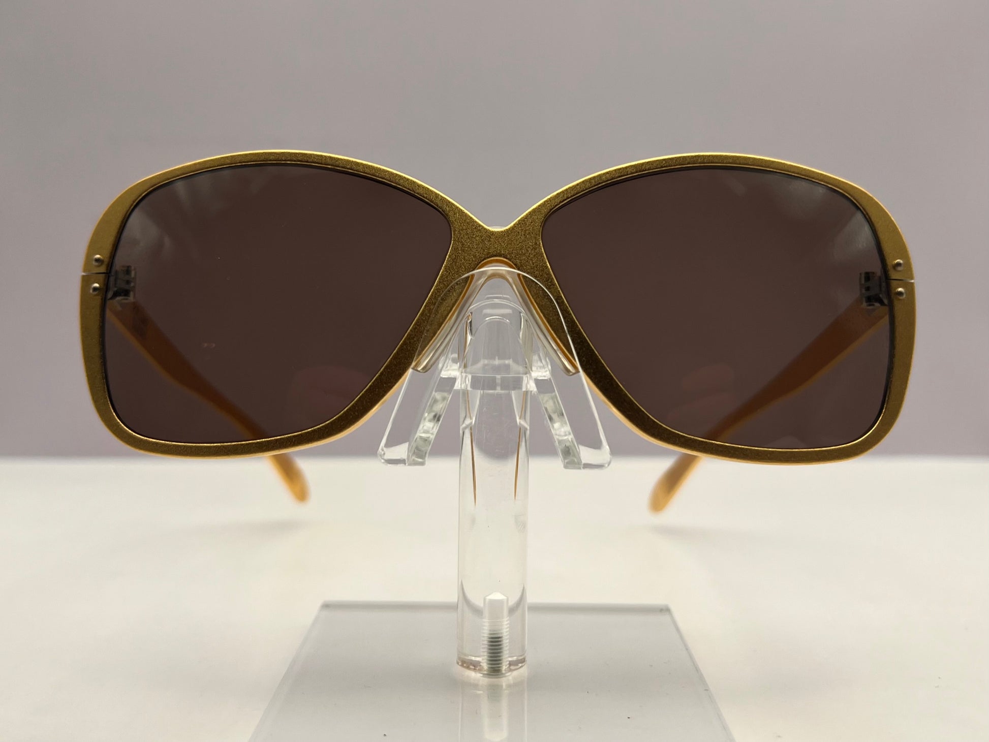 A rare vintage deadstock (never worn) matte gold aluminum frame handcrafted in Japan — an exceptional piece of eyewear craftsmanship preserved from the 1960s–1970s.