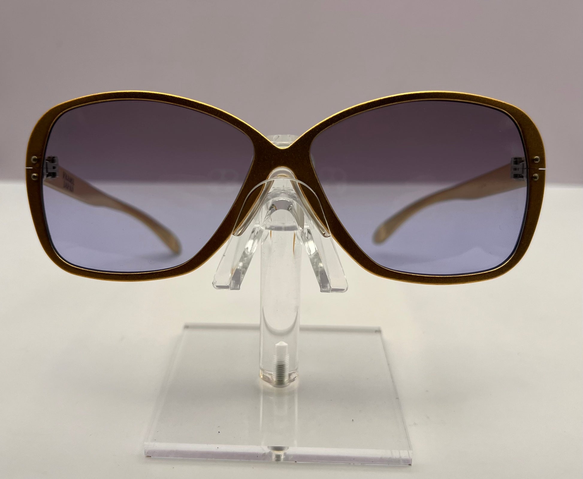 A rare vintage deadstock (never worn) matte gold aluminum frame handcrafted in Japan — a beautifully preserved piece of eyewear history.
