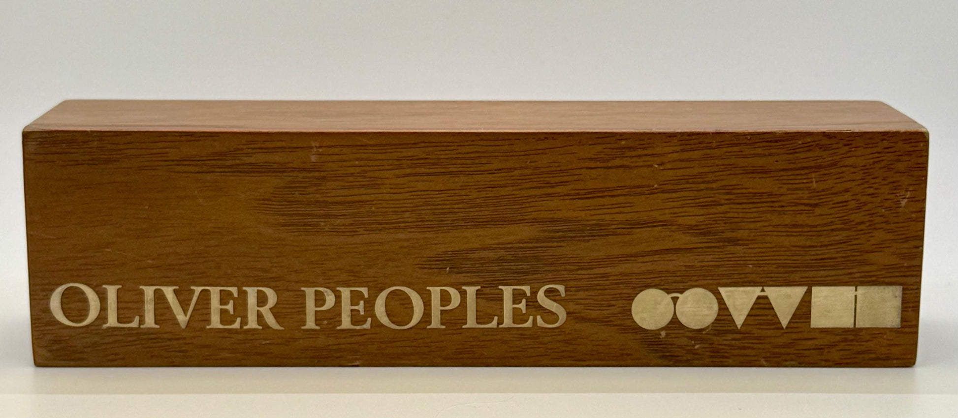 Oliver Peoples Wooden Double-Sided Retail Display with Gold Logo – Pre-Owned