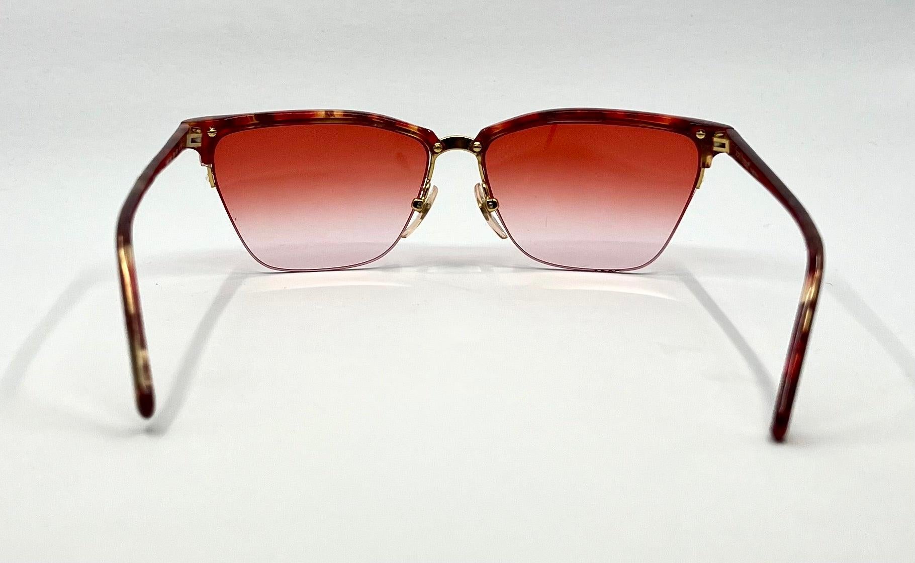 Gianni Versace 343 959 Semi Rimless Vintage Sunglasses w|New Red Havana Custom Gradient tinted Lenses