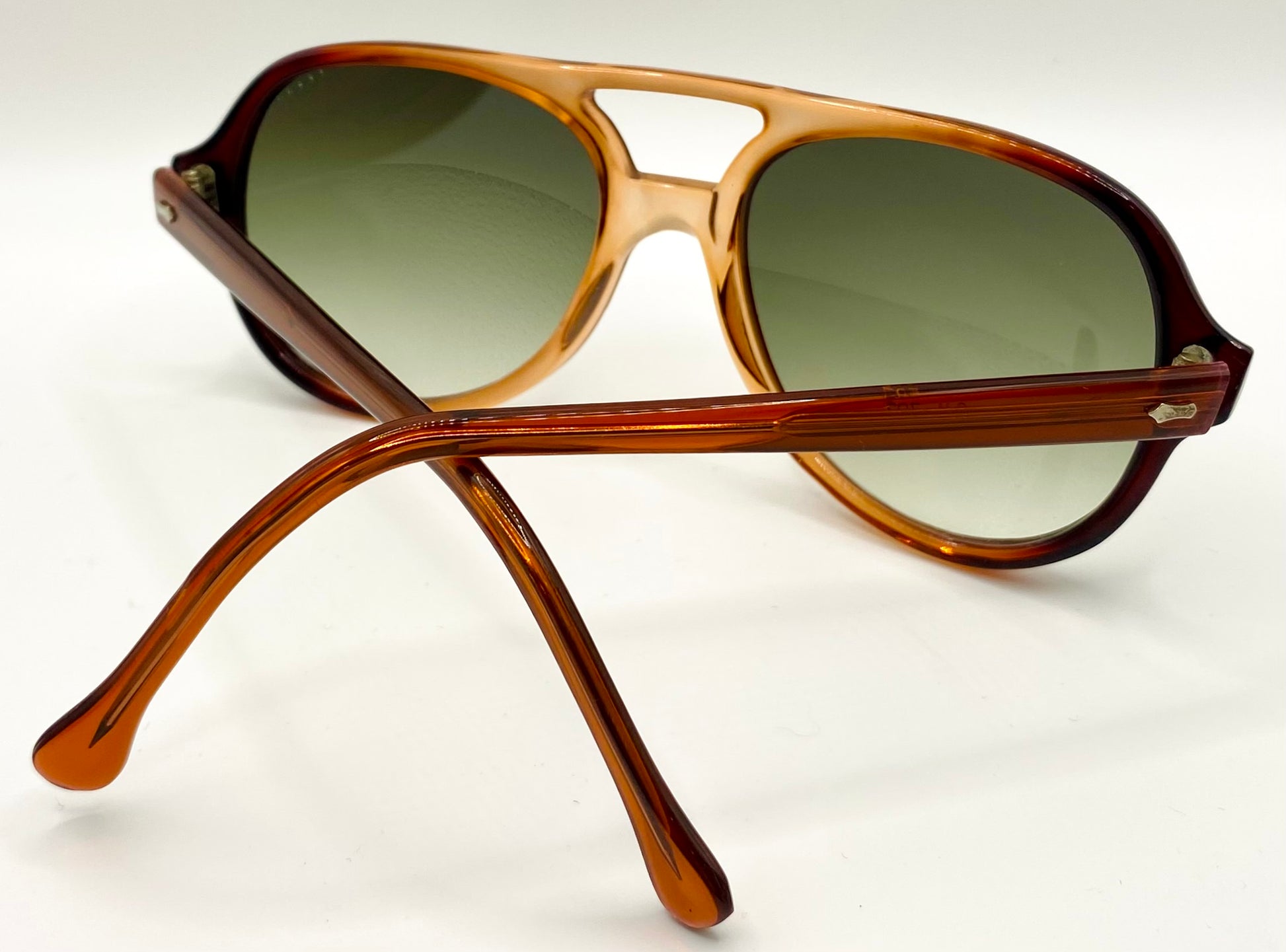 These frames have been professionally upgraded with brand new, custom Gradient Aquamarine lenses from Berko's Designs, blending heritage craftsmanship with modern optical performance and aesthetic flair.