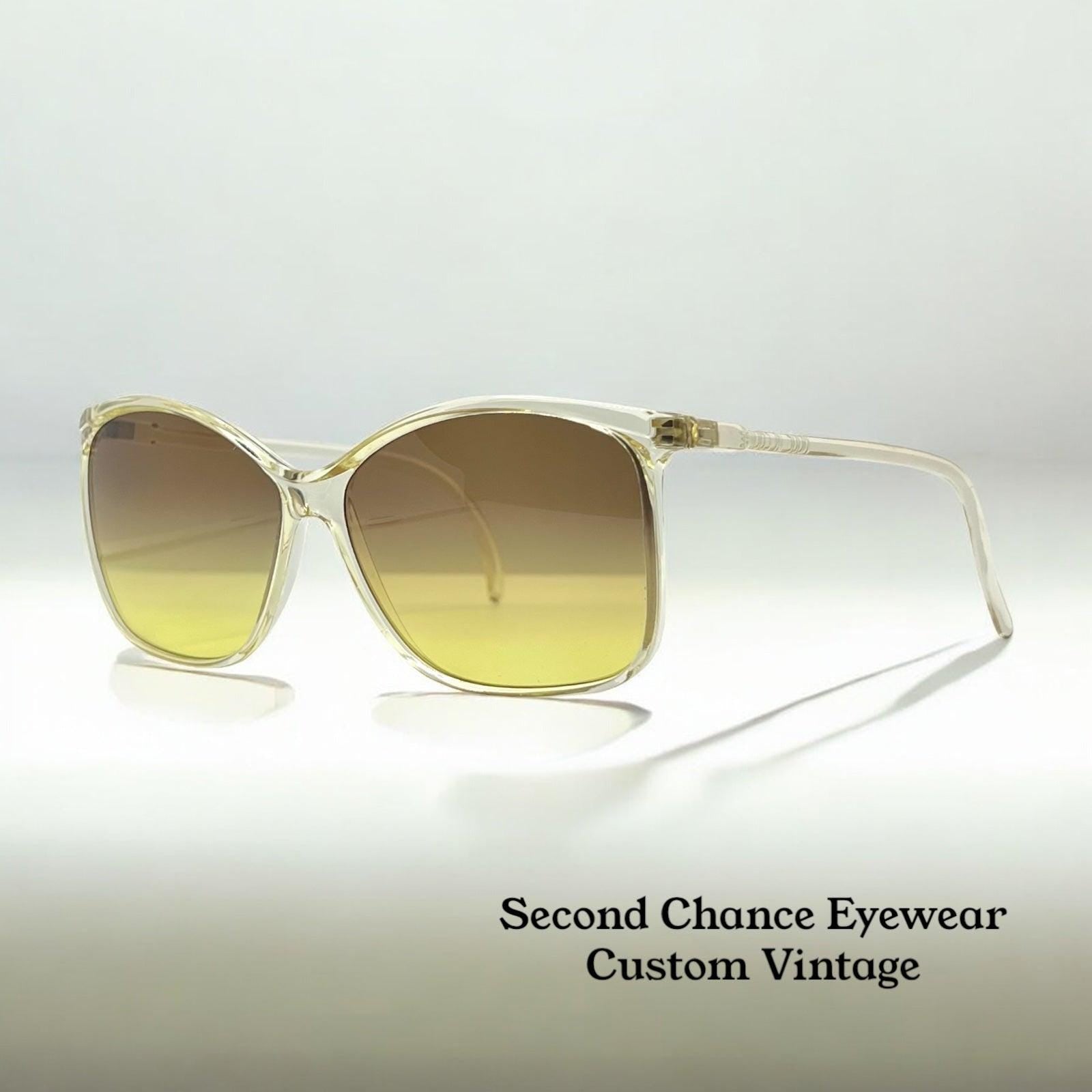 Deadstock “Made in France” Oversized Cat-Eye Sunglasses – Custom Grey to Gold Gradient Lenses