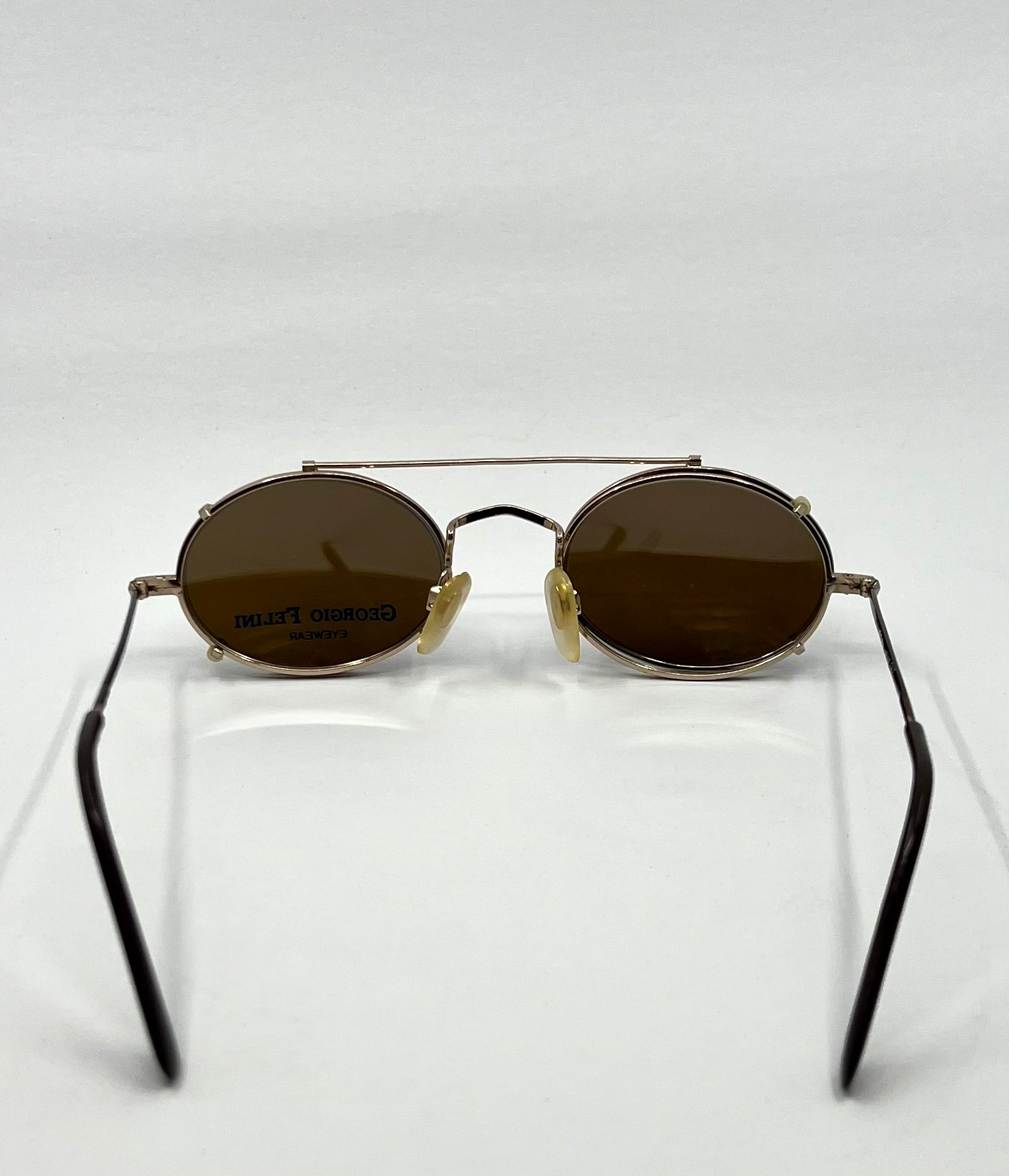 Vintage Giorgio Felini W1480 G/TO Gold Oval Convertible Eyewear with Clip-On - Deadstock Italy 49-20