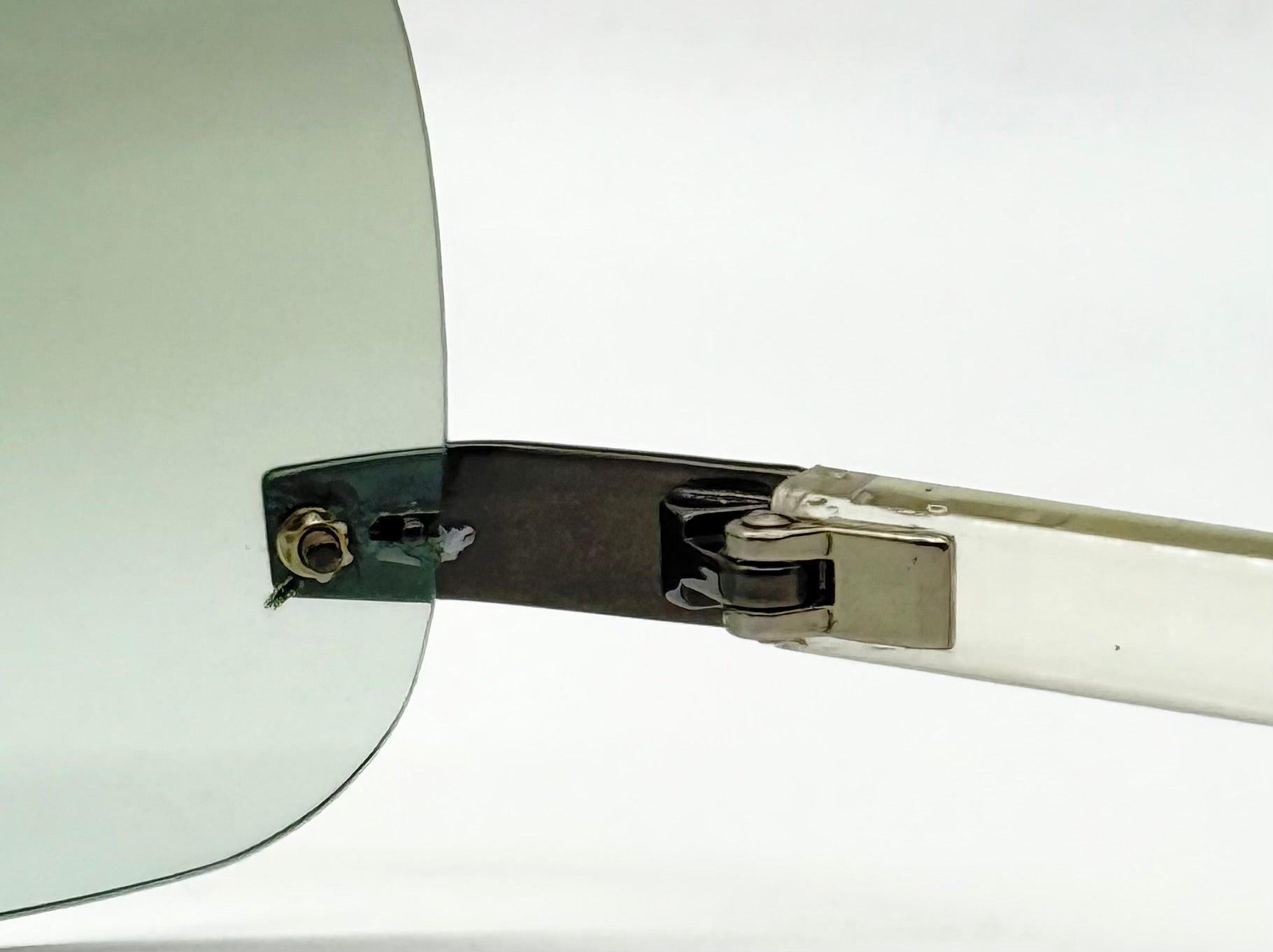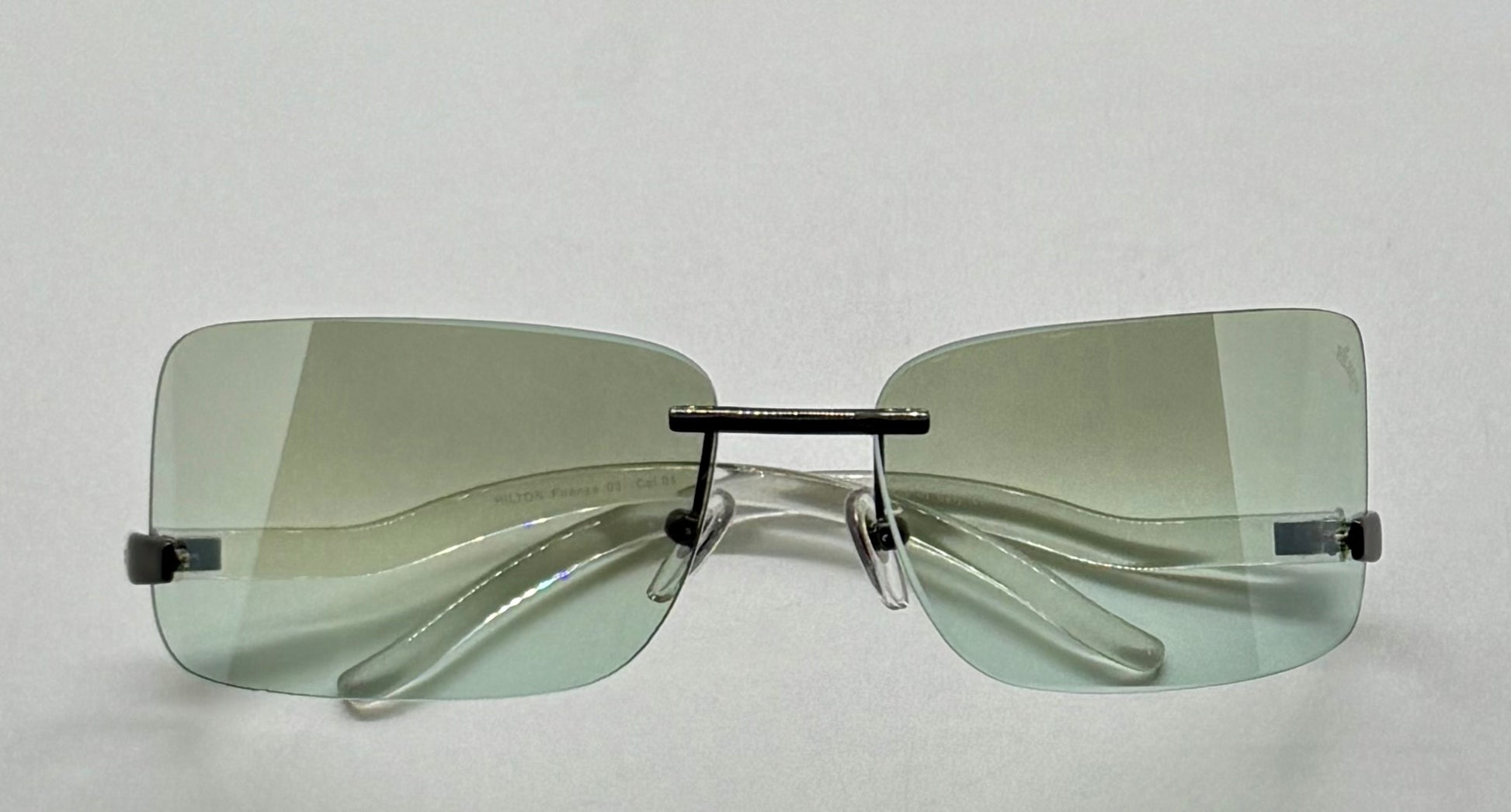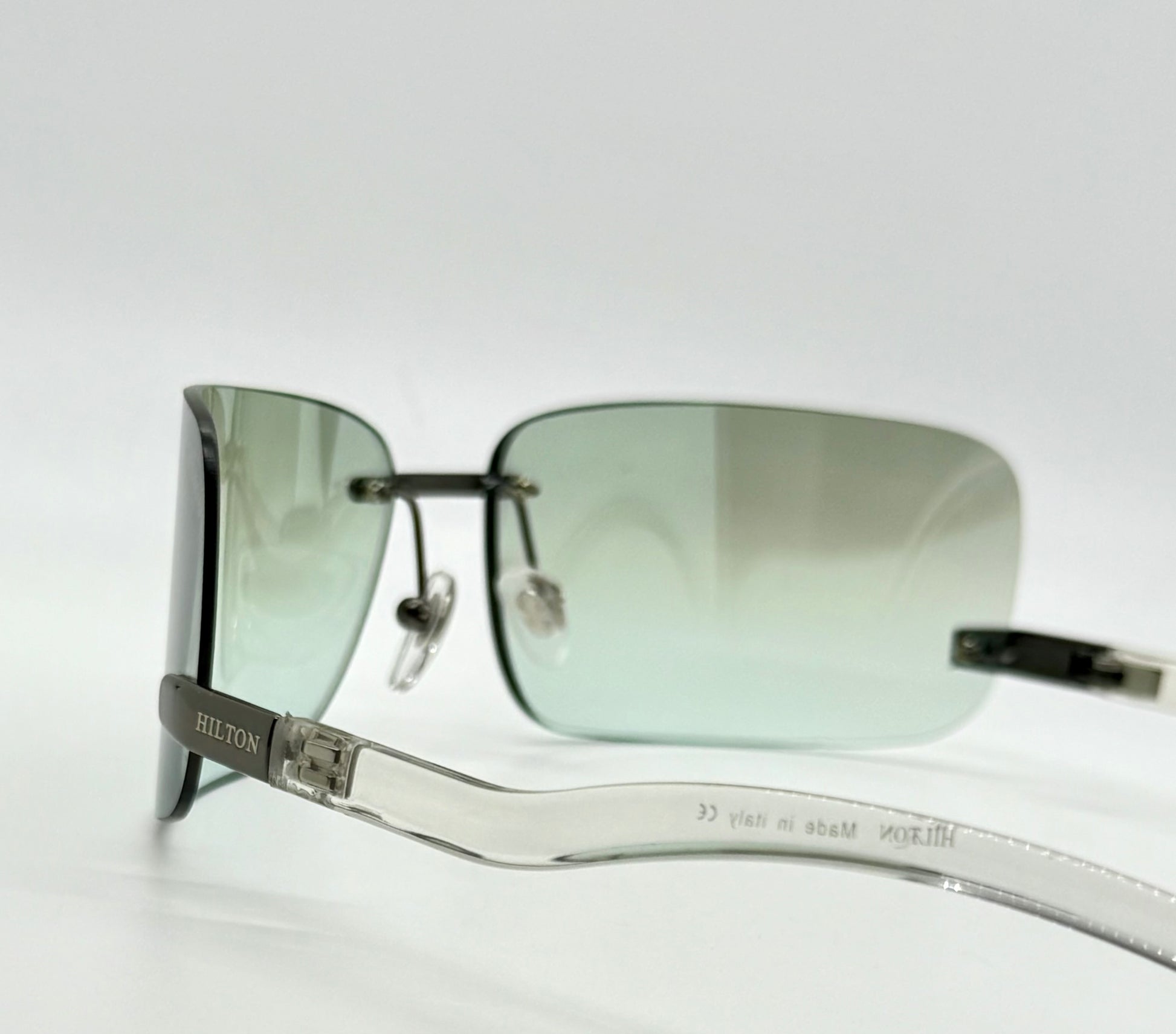 - Relevance: Boutique-level Italian eyewear brand Hilton was known for small-batch, high-quality production, often overshadowed by larger names like Persol or Cazal. This model captures the minimal, futuristic rimless aesthetic popular in the early Y2K period, making it highly collectible for both vintage eyewear enthusiasts and Y2K fashion lovers today.