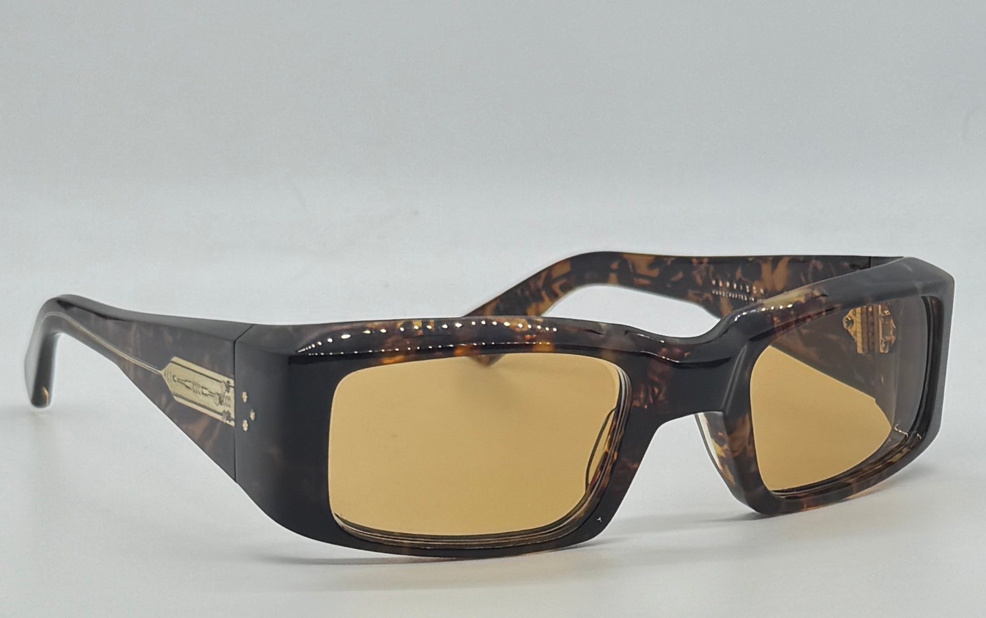 Explore the impact of new sights and sounds in exquisitely sculpted spectacles inspired by those worn by George Harrison during the production of The White Album. The Jacques Marie Mage Harrison is a bold, sculptural frame that channels a sophisticated 1990s wraparound silhouette with modern luxury craftsmanship.