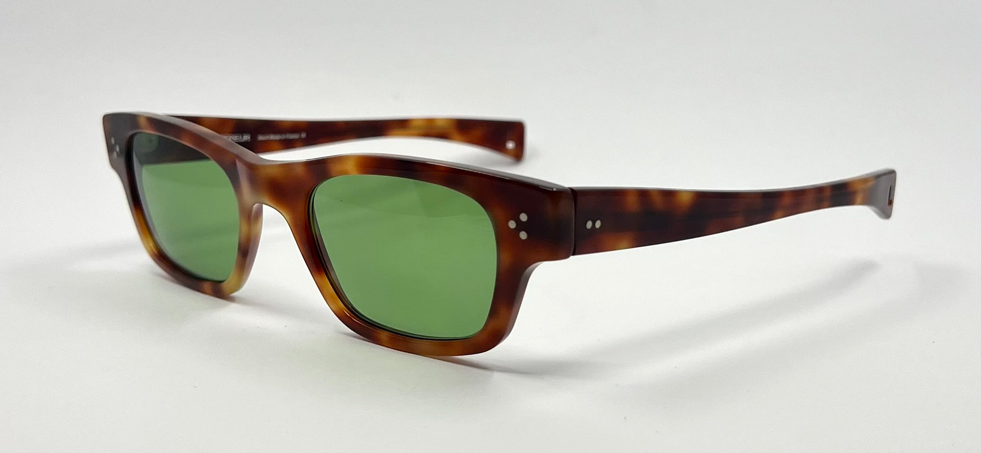 Riveted barrel hinges, thick French acetate, squared wayfarer silhouette