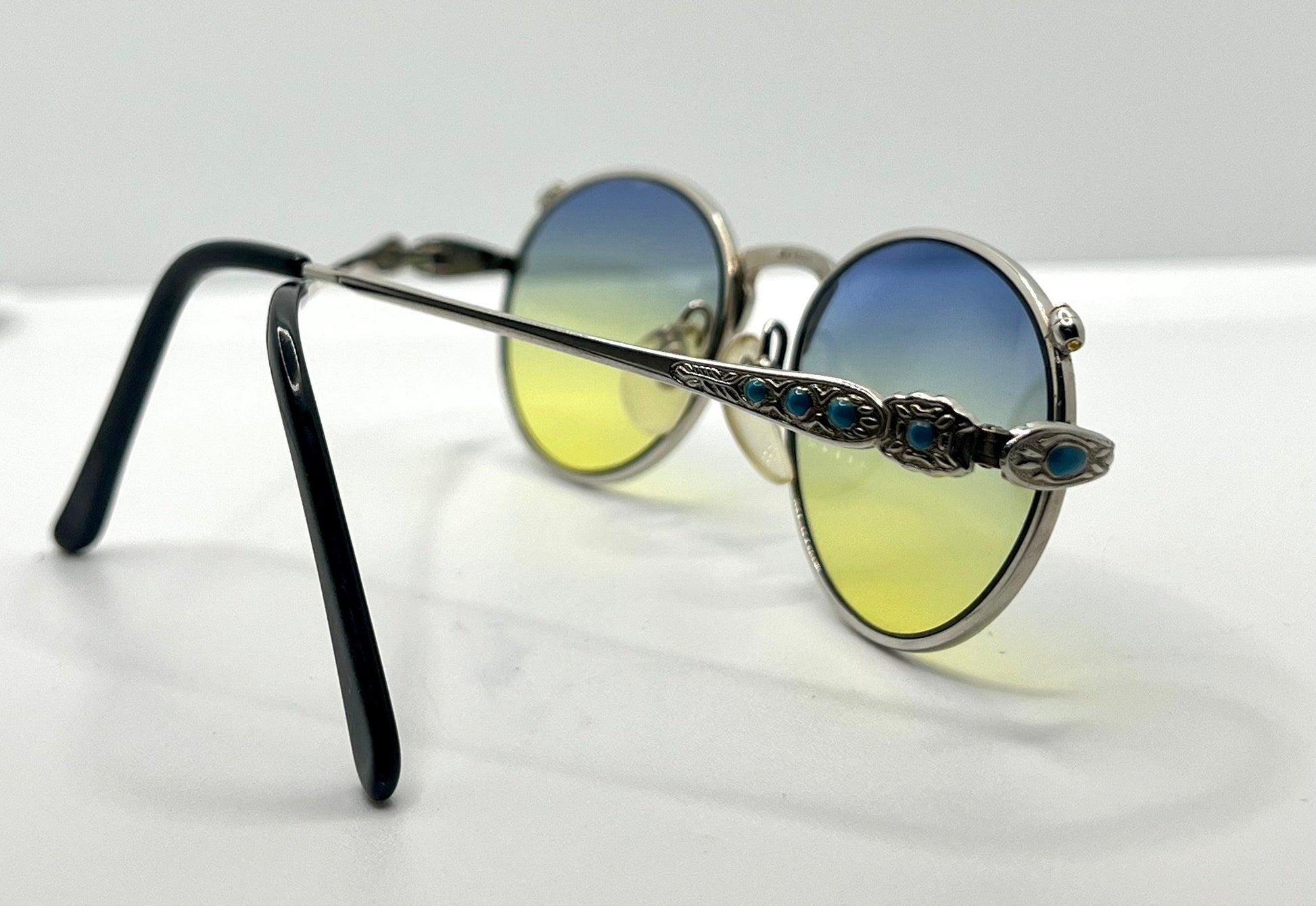 Jkj Turquoise Accent Vintage Sunglasses W|New, Custom Blue|Yellow Gradient Lenses-Japan