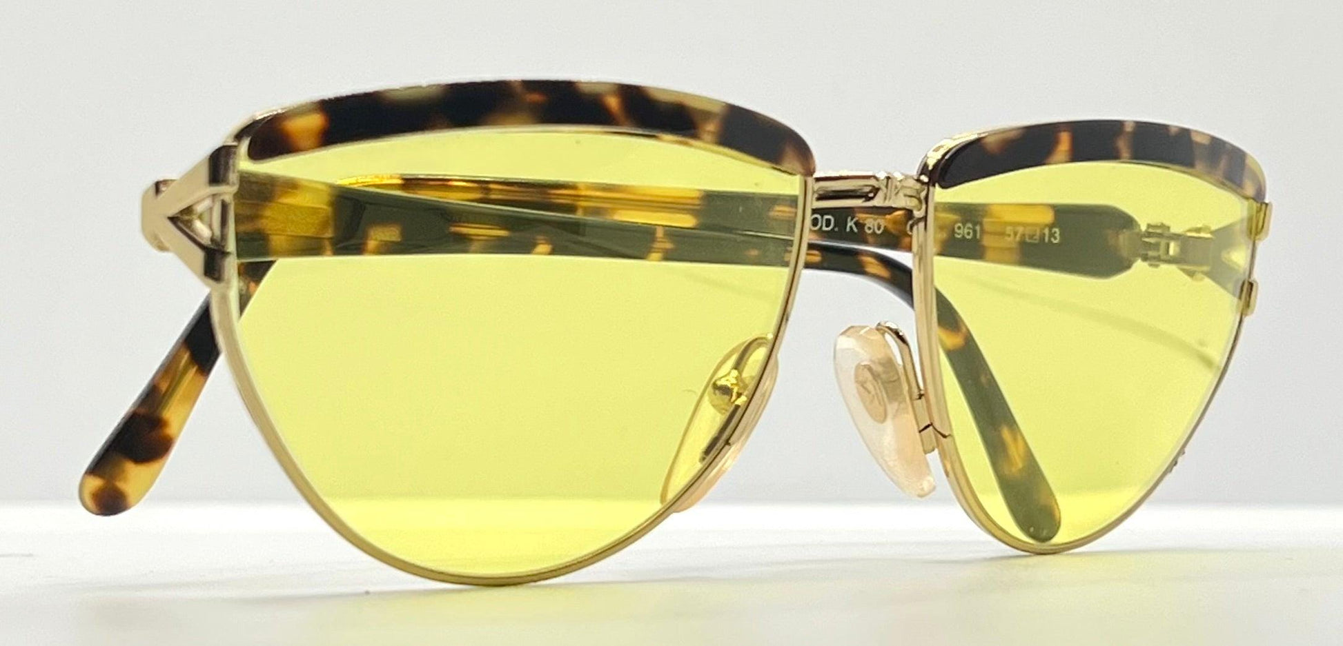 Authentic vintage Kador sunglasses, Model K 80, expertly customized by Second Chance Customs with vibrant yellow lenses. This striking frame combines mid-century Italian precision with a modern, fashion-forward finish — a rare example of late-1980s Italian craftsmanship and luxury eyewear design.