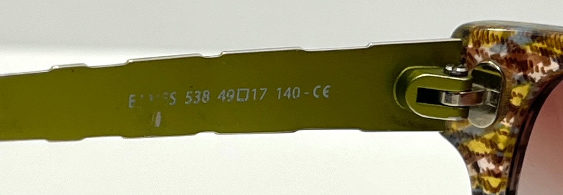 An expressive and rare piece from Lafont’s avant-garde ISSY & LA line. Made in France, this EVISS 538 model features a layered acetate front with a dynamic pattern reminiscent of houndstooth and reptilian textures. The olive green textured metal temples and brown tortoise temple tips add sculptural contrast to the vibrant front.