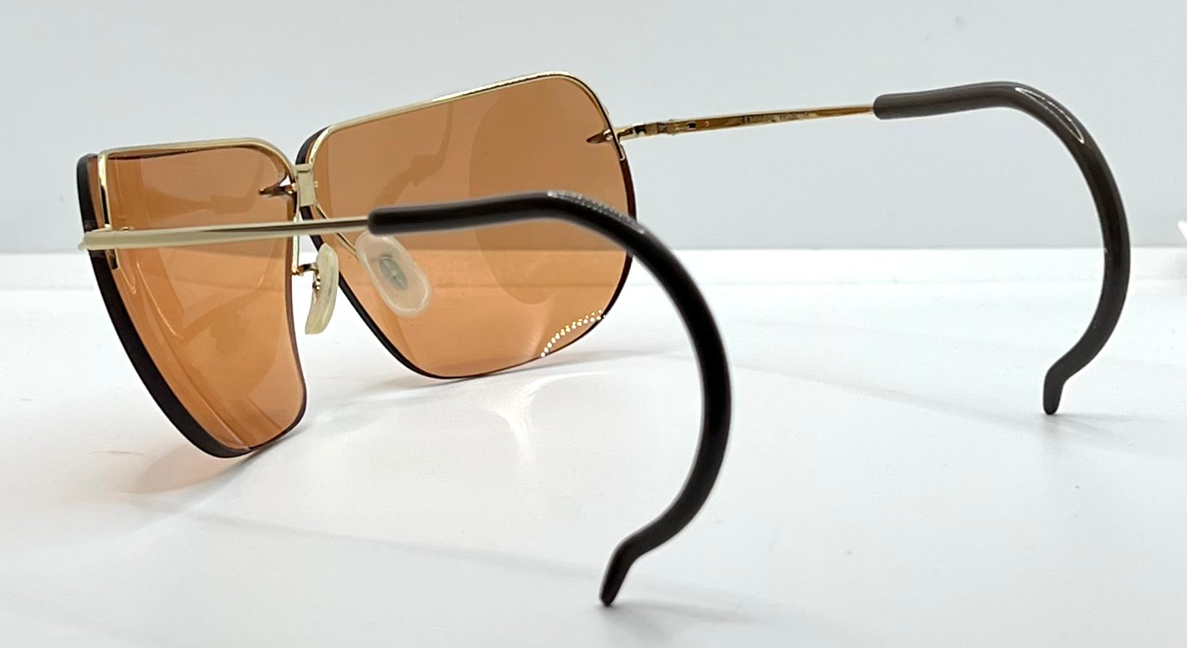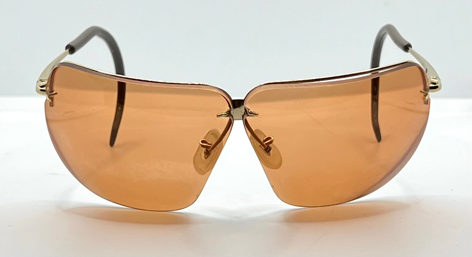 Rare and collectible modular eyewear system from Lehman Optical, designed for sportsmen, pilots, and outdoor professionals. This cable-temple rimless design allows for quick lens swaps to adapt to varying light conditions.