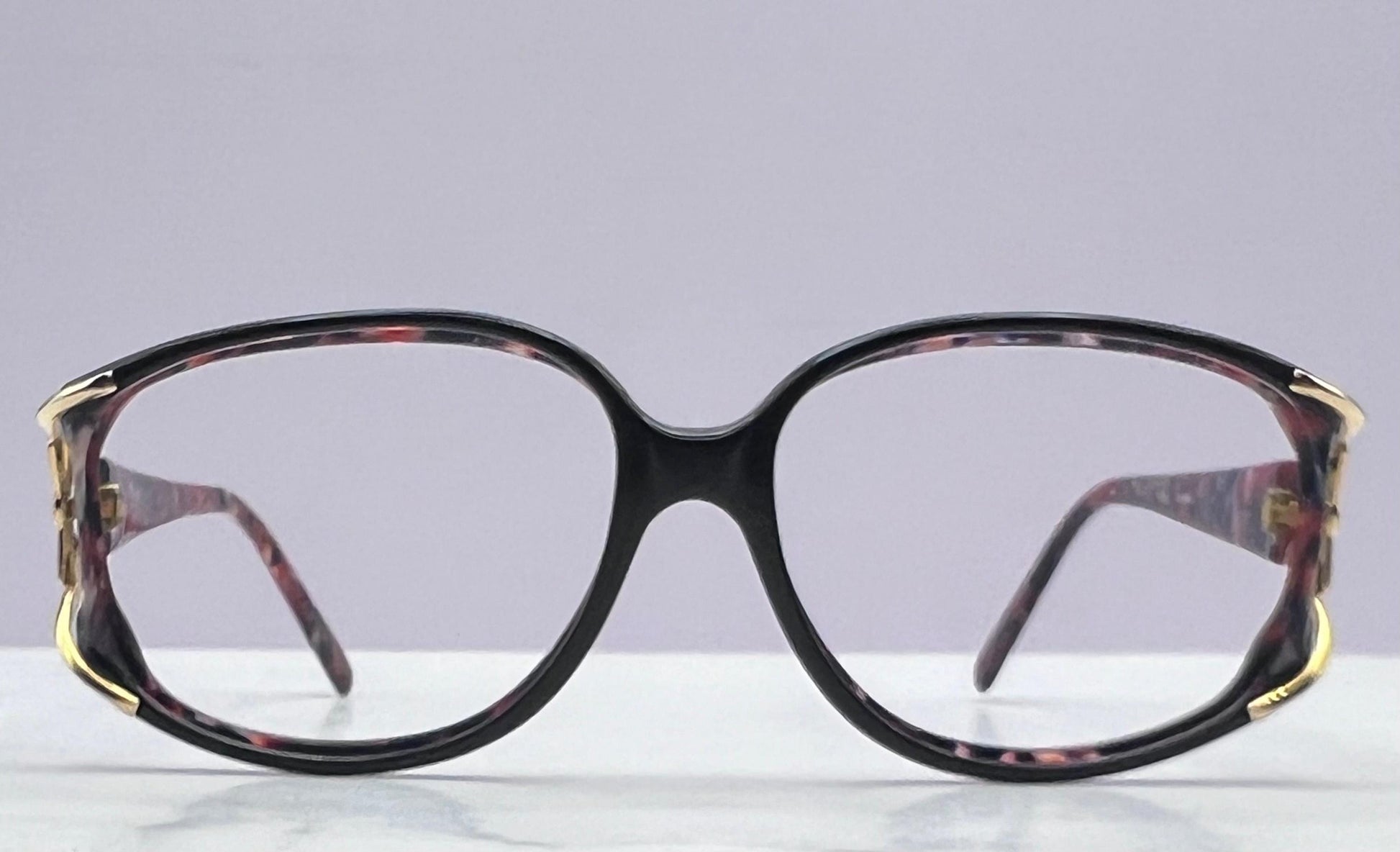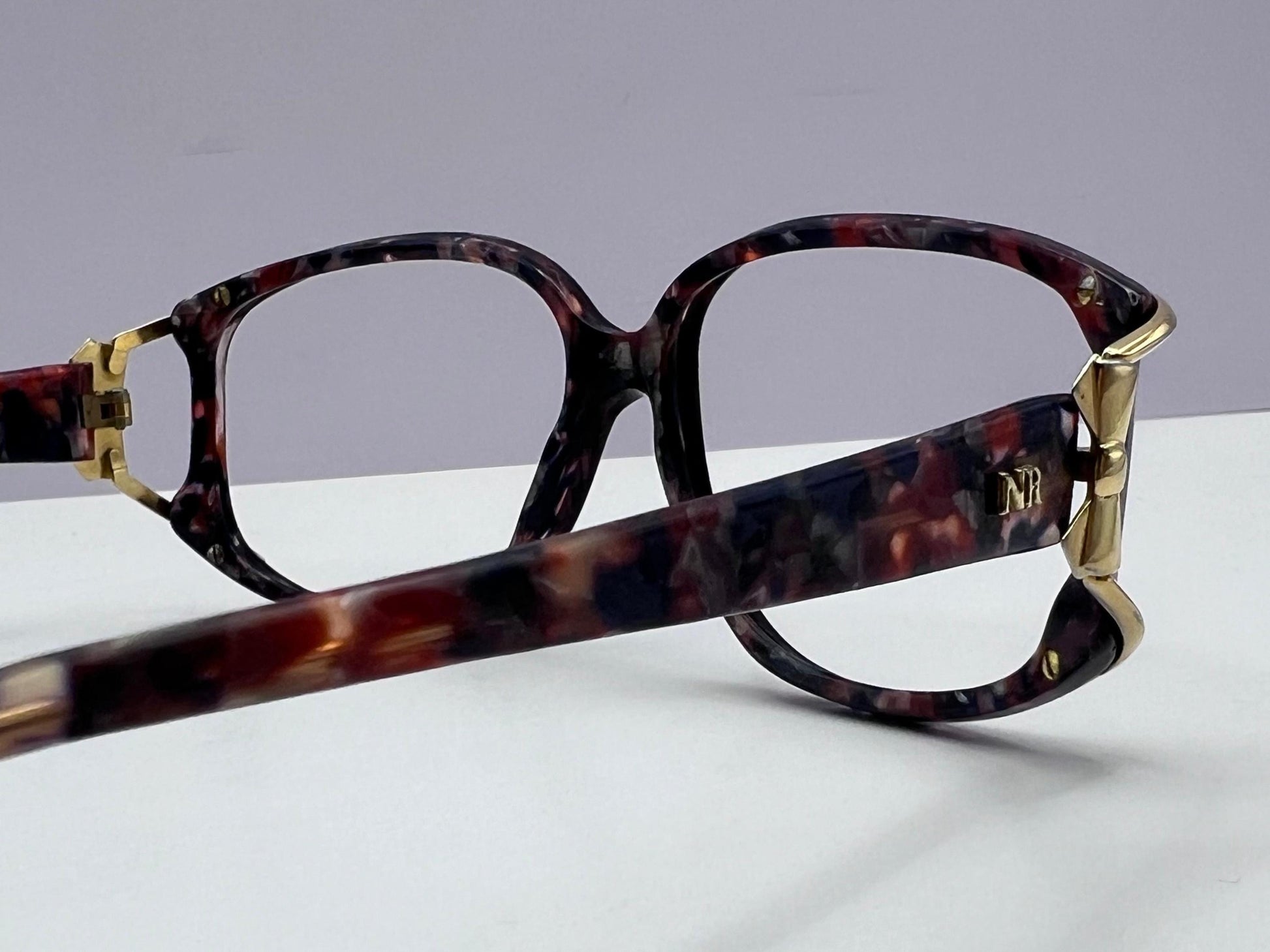 A timeless and elegant vintage frame from Nina Ricci Paris, this RC 3010 model was handcrafted in France during the 1980s. Featuring a butterfly silhouette sculpted from multi-color acetate with gold hardware accents, this piece captures the signature sophistication of the brand’s eyewear design era.