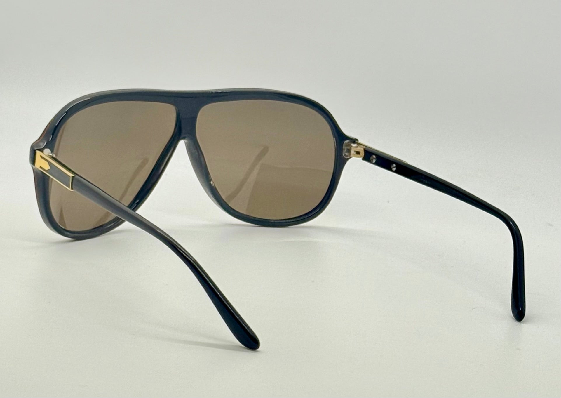 - Temples: Gold Skyscraper Arrow plates, solid non-Meflecto temples (rare variation)