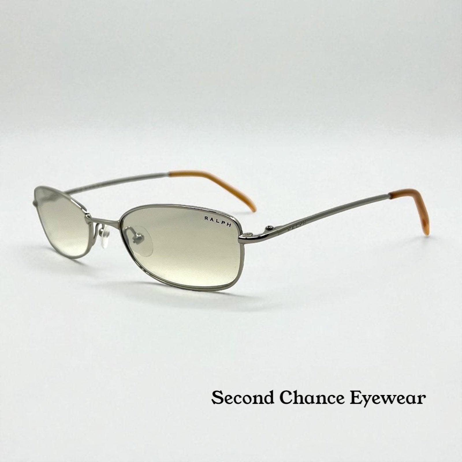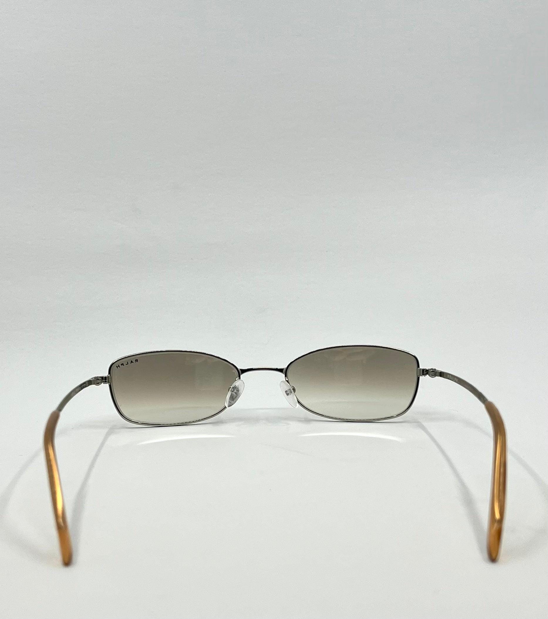 • Style: Minimalist Y2K rectangular wraparound, slim metal construction, Ralph logo etched on lens