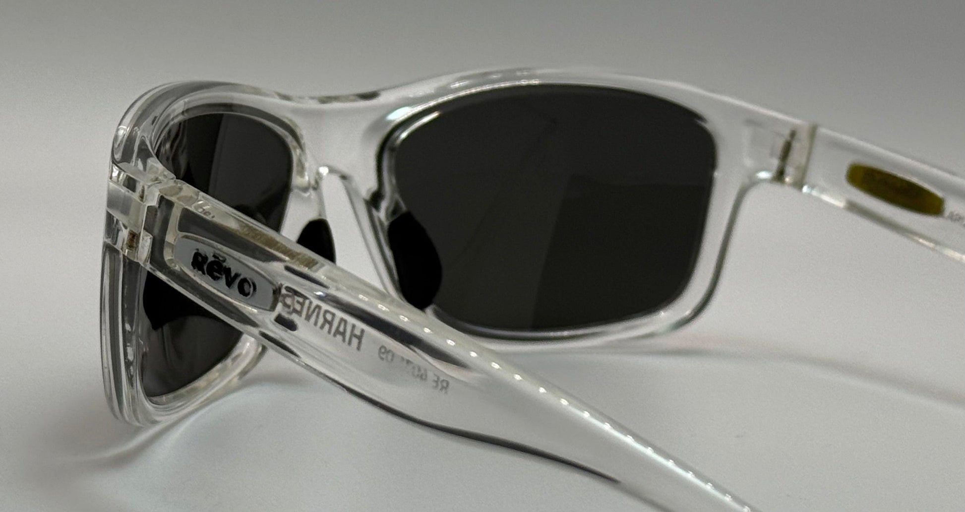 Elevate your eyewear collection with these vintage Revo Harness Polarized Sunglasses. Featuring a crystal clear frame paired with brand new dark grey polarized lenses, this model combines timeless style with modern optical performance. Designed for sharp vision and maximum comfort, these sunglasses are perfect for both collectors and daily wear.
