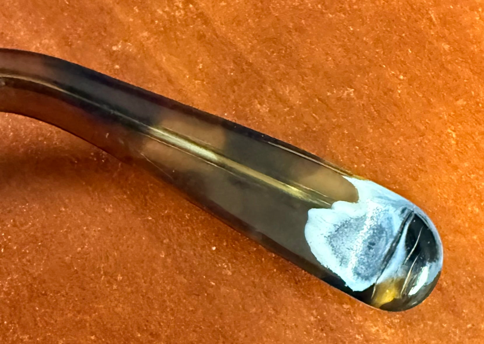 Small chip at the end of the left temple tip (unnoticeable while worn, does not affect structure or comfort)