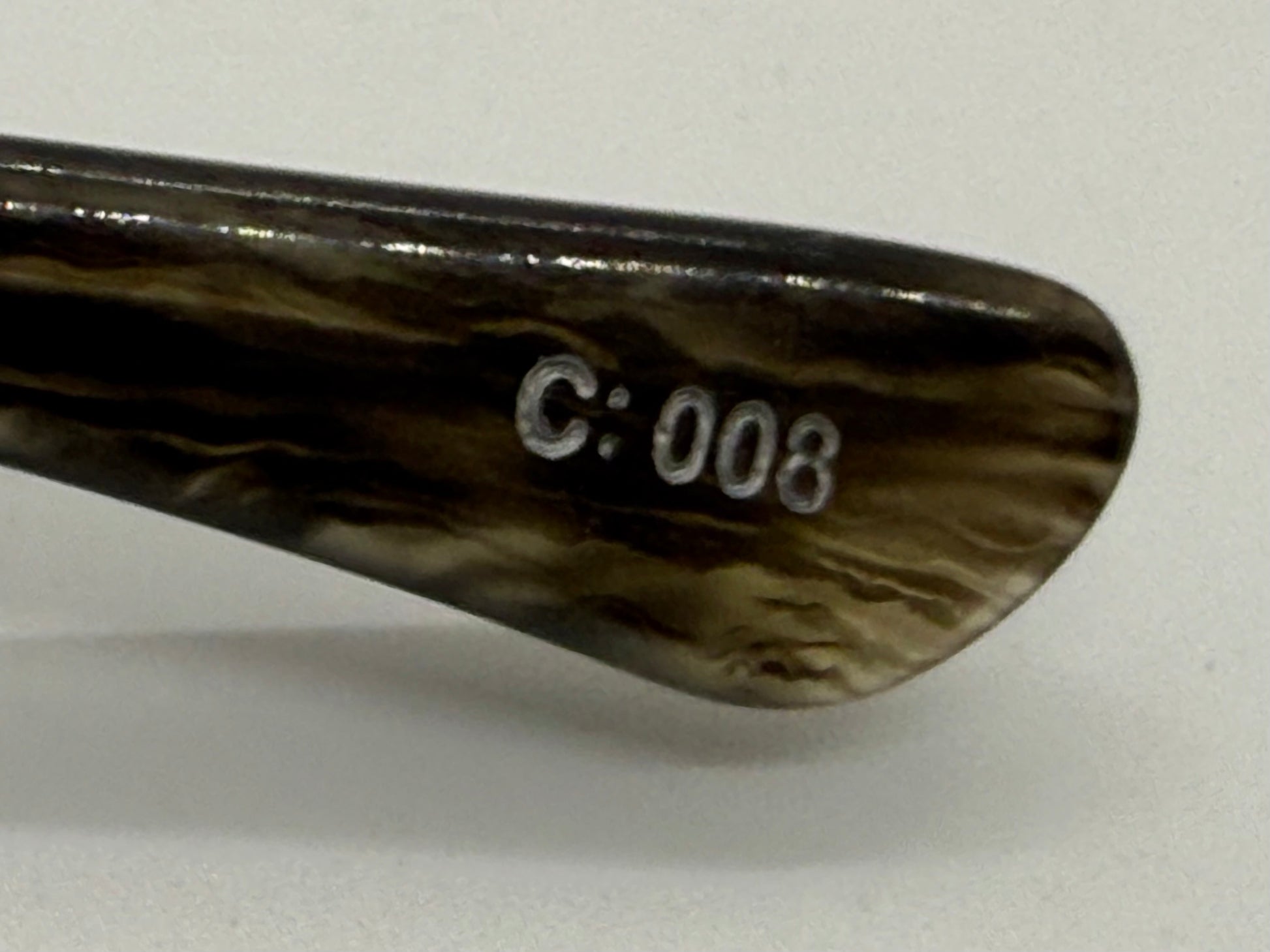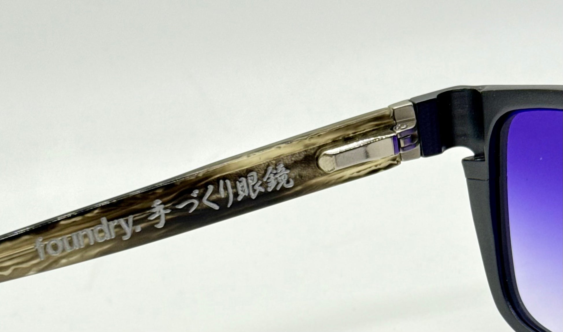 A rare and potentially unreleased collaborative frame between Superdry CO and Foundry Japan, this piece stands out with its matte black front, richly textured marbled tortoise temples, and engraved Japanese calligraphy across both the brow line and temples. Fitted with brand new custom gradient lenses by Second Chance Customs, this is not your average pair of Superdry frames.