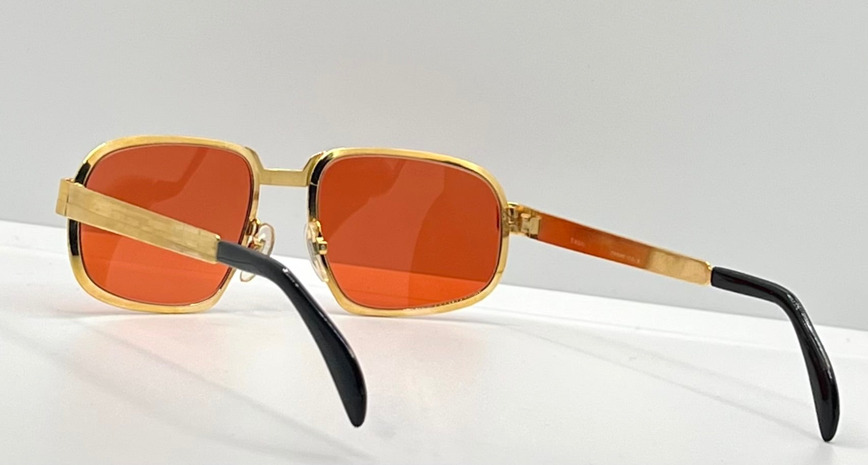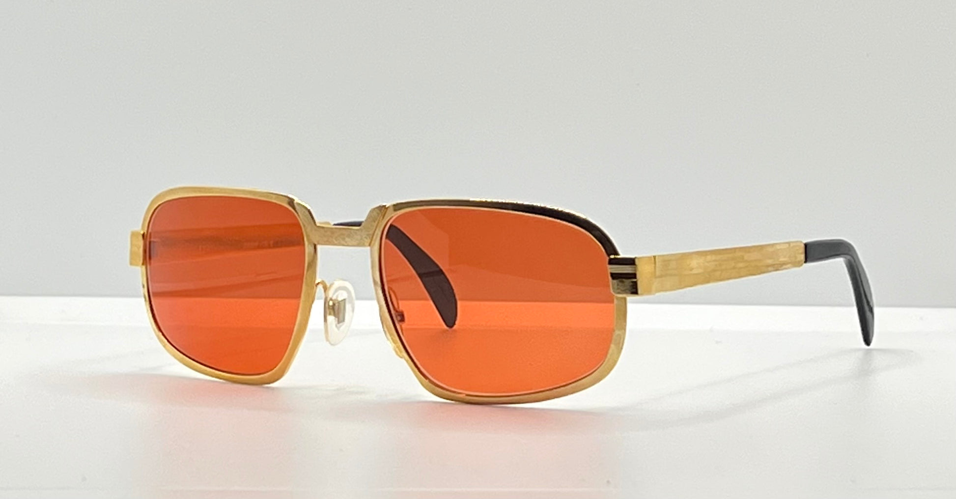 Fitted with brand new Berko’s Designs “Tuscan Flame” lenses, a rich orange-red solid tint inspired by the glowing sunsets of Tuscany and the expressive vibrance of 1970s Italian eyewear. These lenses deliver UV protection, visual clarity, and a striking color presence that enhances the frame’s vintage opulence.