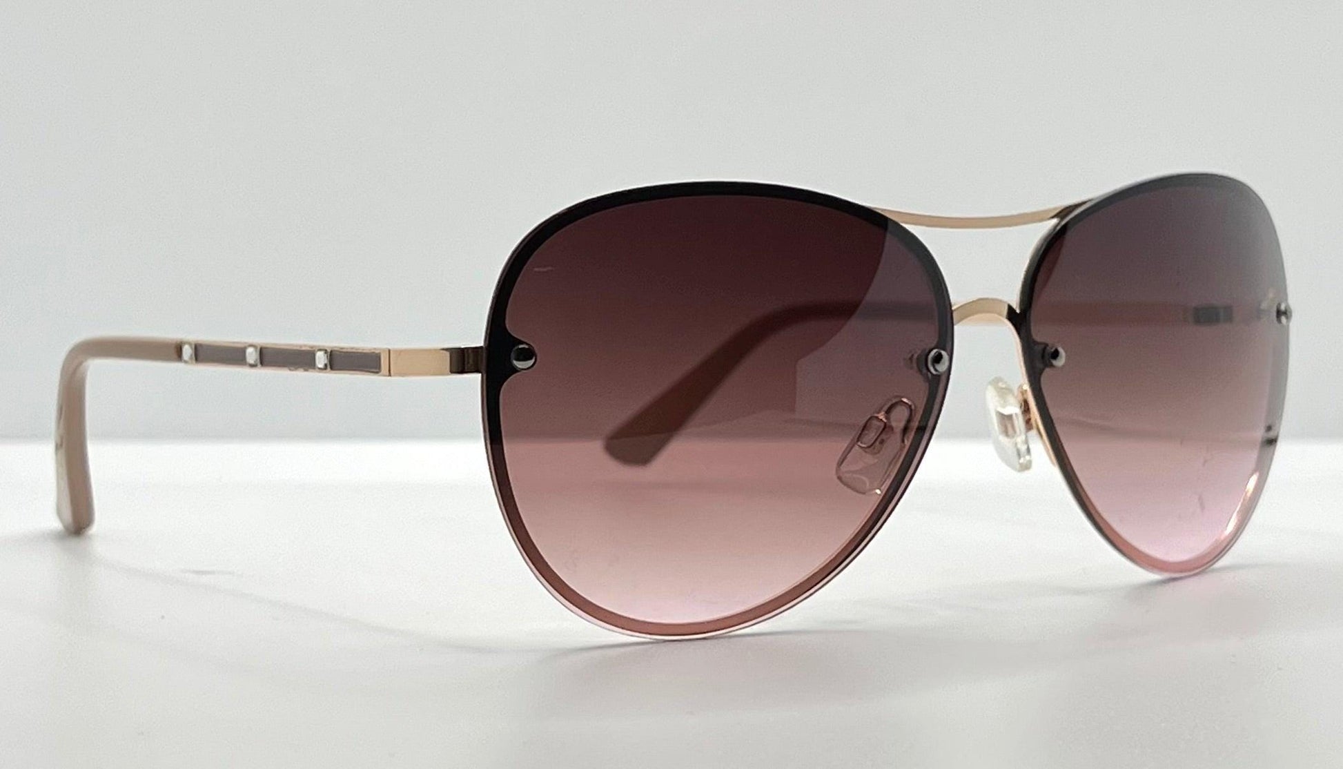 A modern, soft aviator silhouette blending luxury with everyday wearability. The rimless design offers minimal visual weight, while the warm gold finish and blush-toned temple accents provide a refined, feminine edge. Lightweight and flattering, ideal for all-day wear, travel, or light styling.