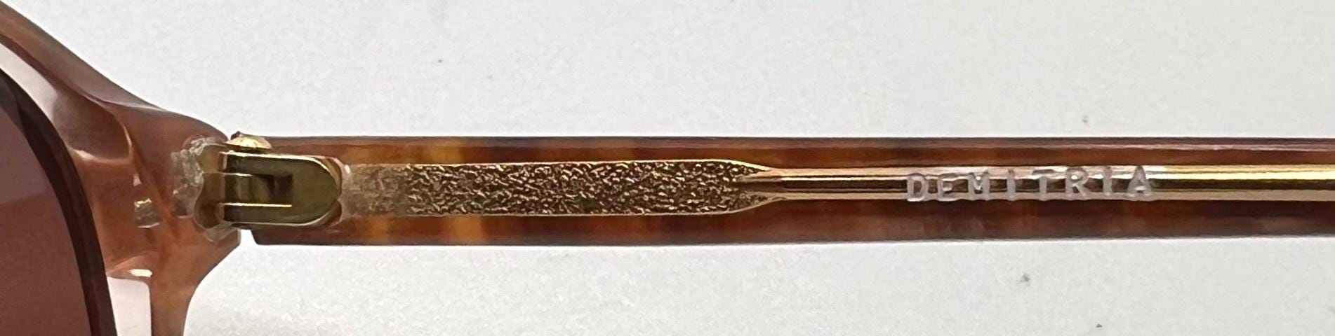 These vintage Demitria sunglasses blend subtle elegance with bold design, captured in a rich sand marble finish with a soft pearlescent tortoise hue.
