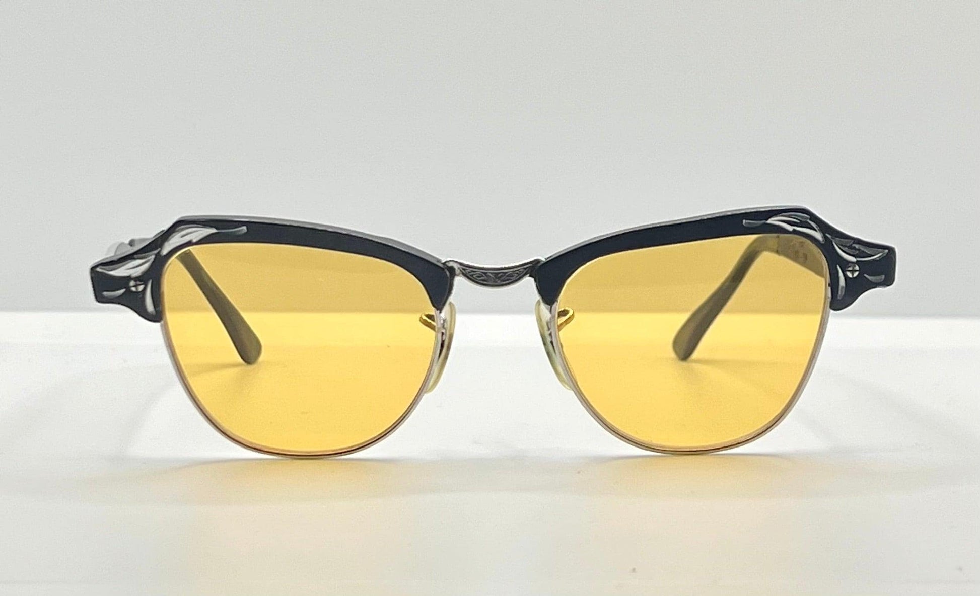 Authentic vintage Bausch & Lomb Clubmaster-style sunglasses, featuring a 1/10 12K gold-filled bridge and custom persimmon lenses — a perfect union of historical craftsmanship and modern visual flair.