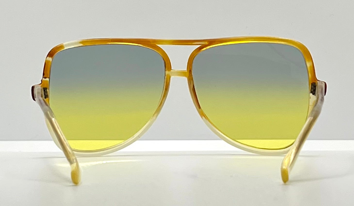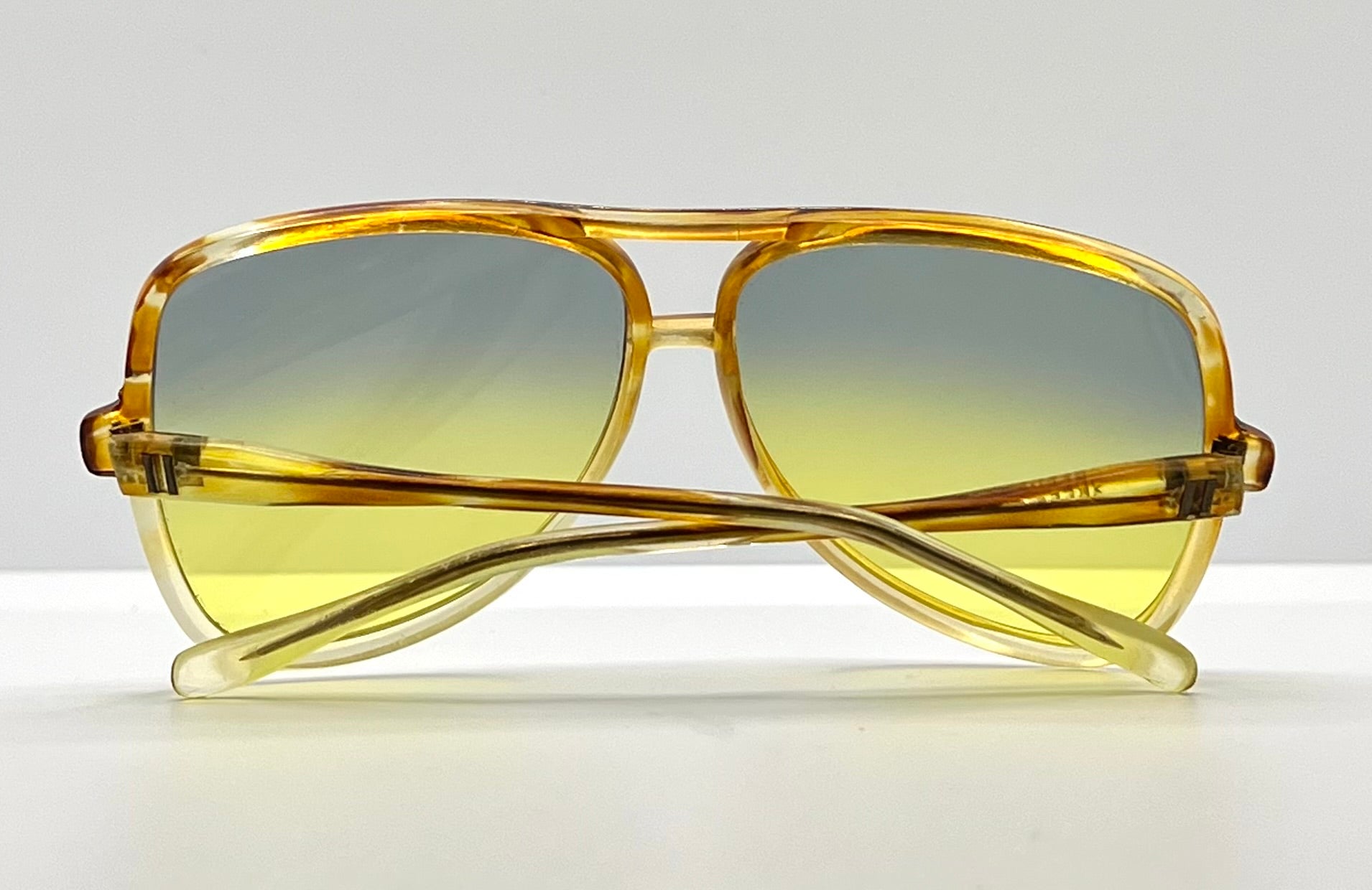 Vintage GREECE Aviator – Transparent Amber Frame – Custom Grey to Yellow Gradient Lenses – Pre-Owned