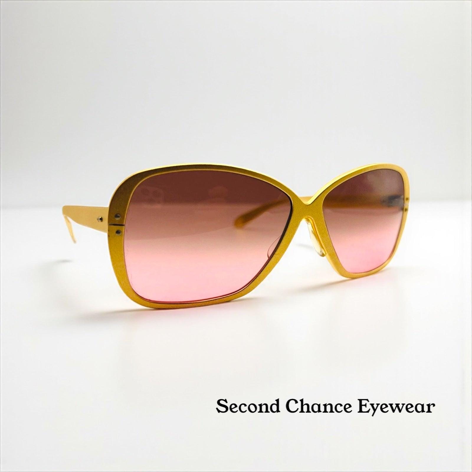 The pictures tell the story — these vintage matte gold frames with custom grey-to-pink gradient lenses are sophisticated, rare, and beautifully reimagined for modern wear.