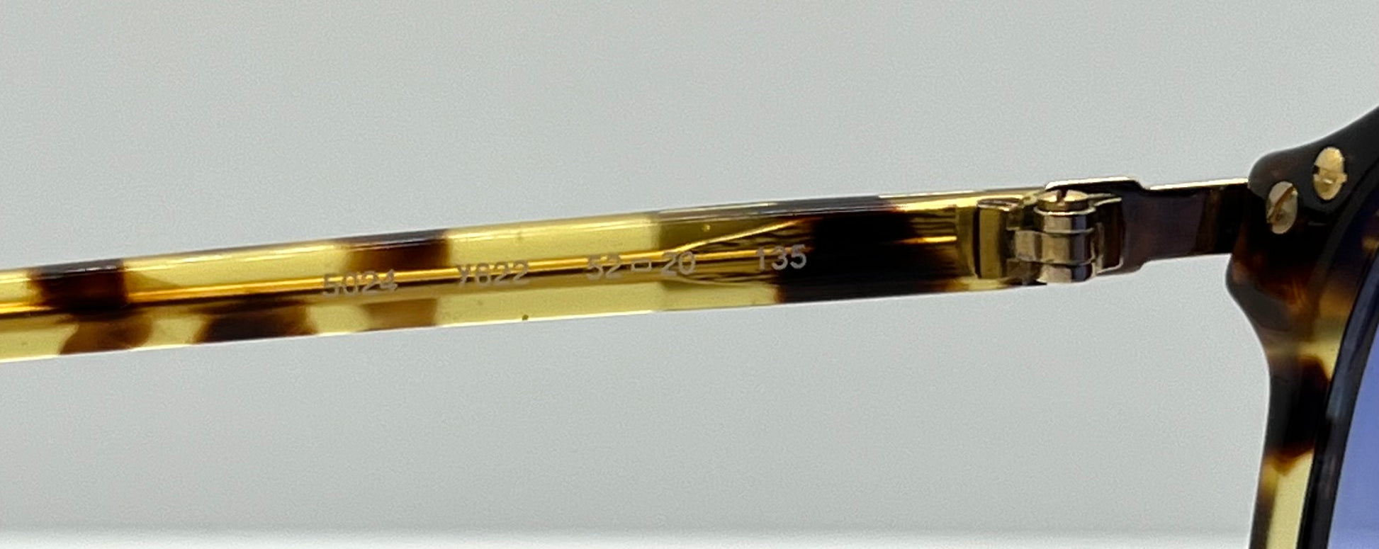 An authentic vintage Yves Saint Laurent 5023 frame in blonde tortoise/honey Havana acetate. Crafted in Italy and preserved in deadstock, unworn condition, this iconic silhouette features YSL’s signature gold-tone core wire and metal hinge system, complete with the classic triple-bar accents at the temples.